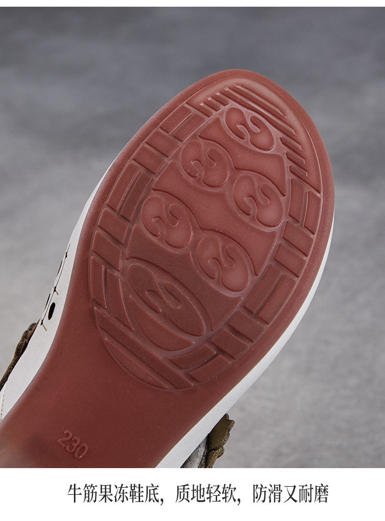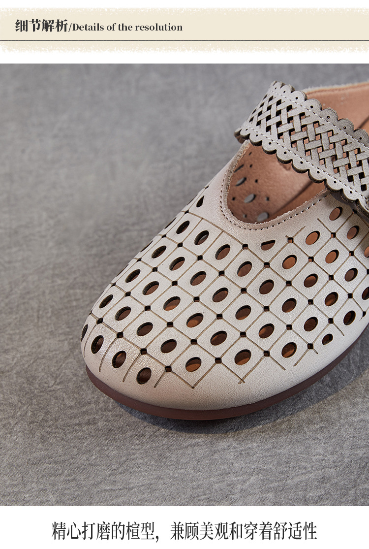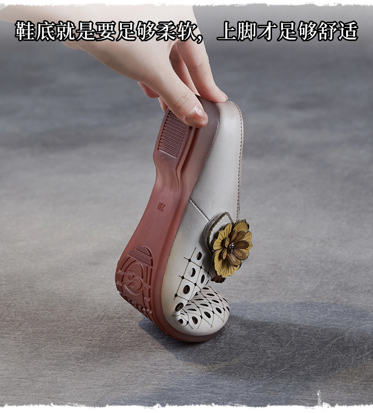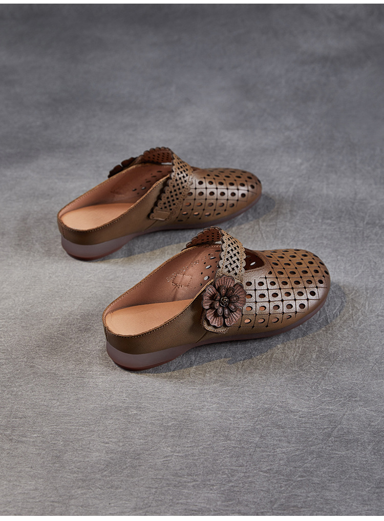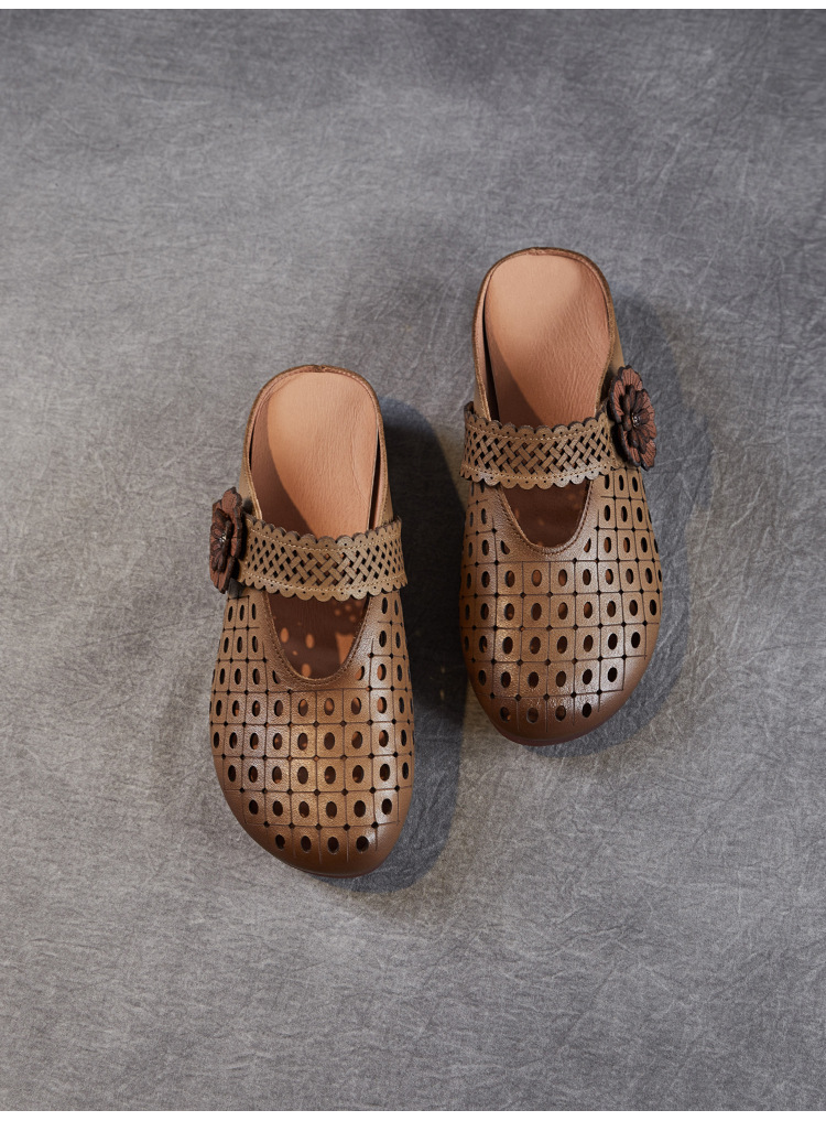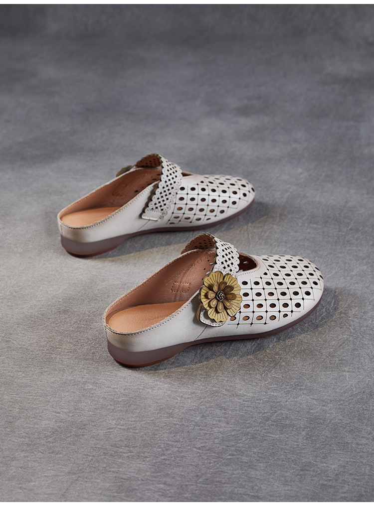 여성 1 층 소 가죽 샌들 부드러운 바닥 부드러운 표면 평평한 힐 새로운 하프 슬립 바깥 쪽 속이 빈 민족 스타일의 빈티지 슬리퍼