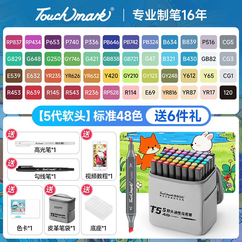 터치 마크 알코올 마커 부드러운 머리 손으로 그린 애니메이션 디자인 특수 80 색 유성 마커 세트