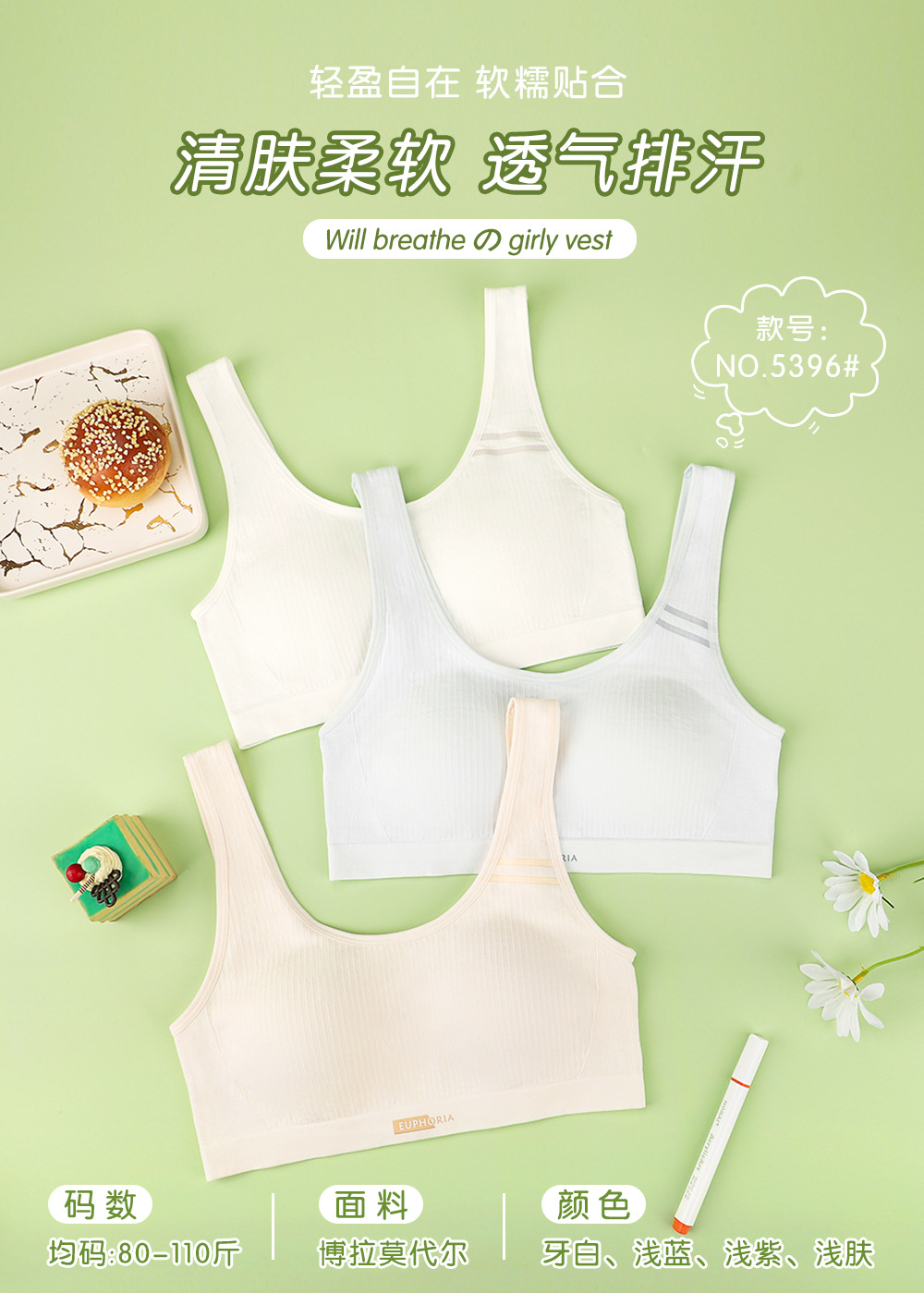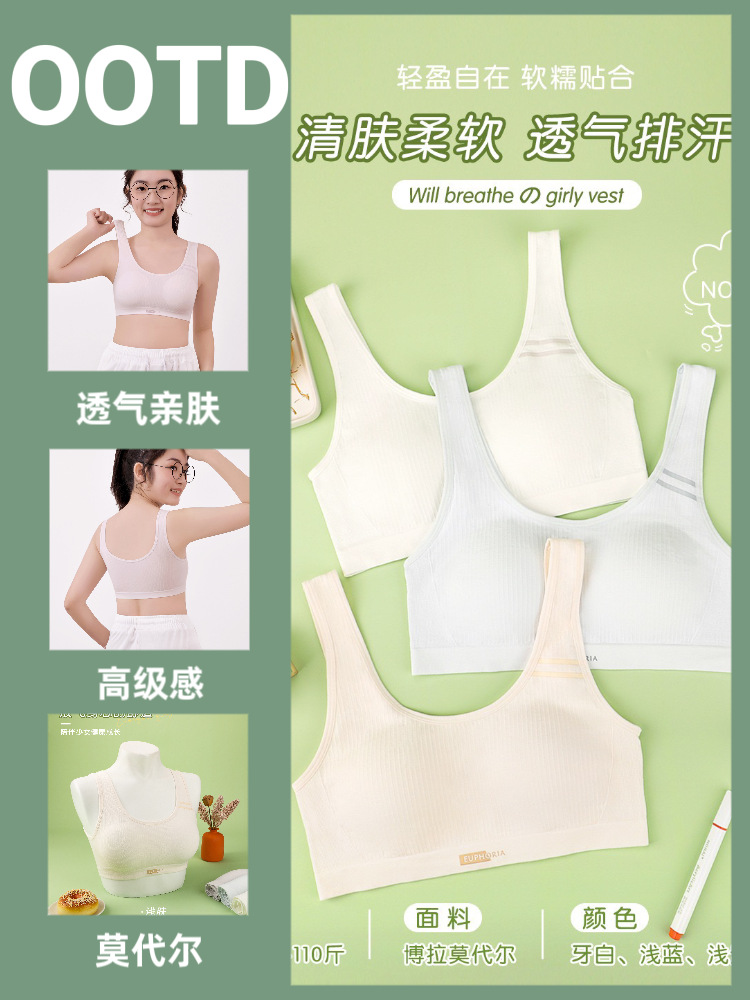 모달 와이드 숄더 걸스 발달 조끼 어린이 안티 워킹 라이트 Bottoming 가슴 포장 상쾌한 통기성 안티 범프 스트랩리스