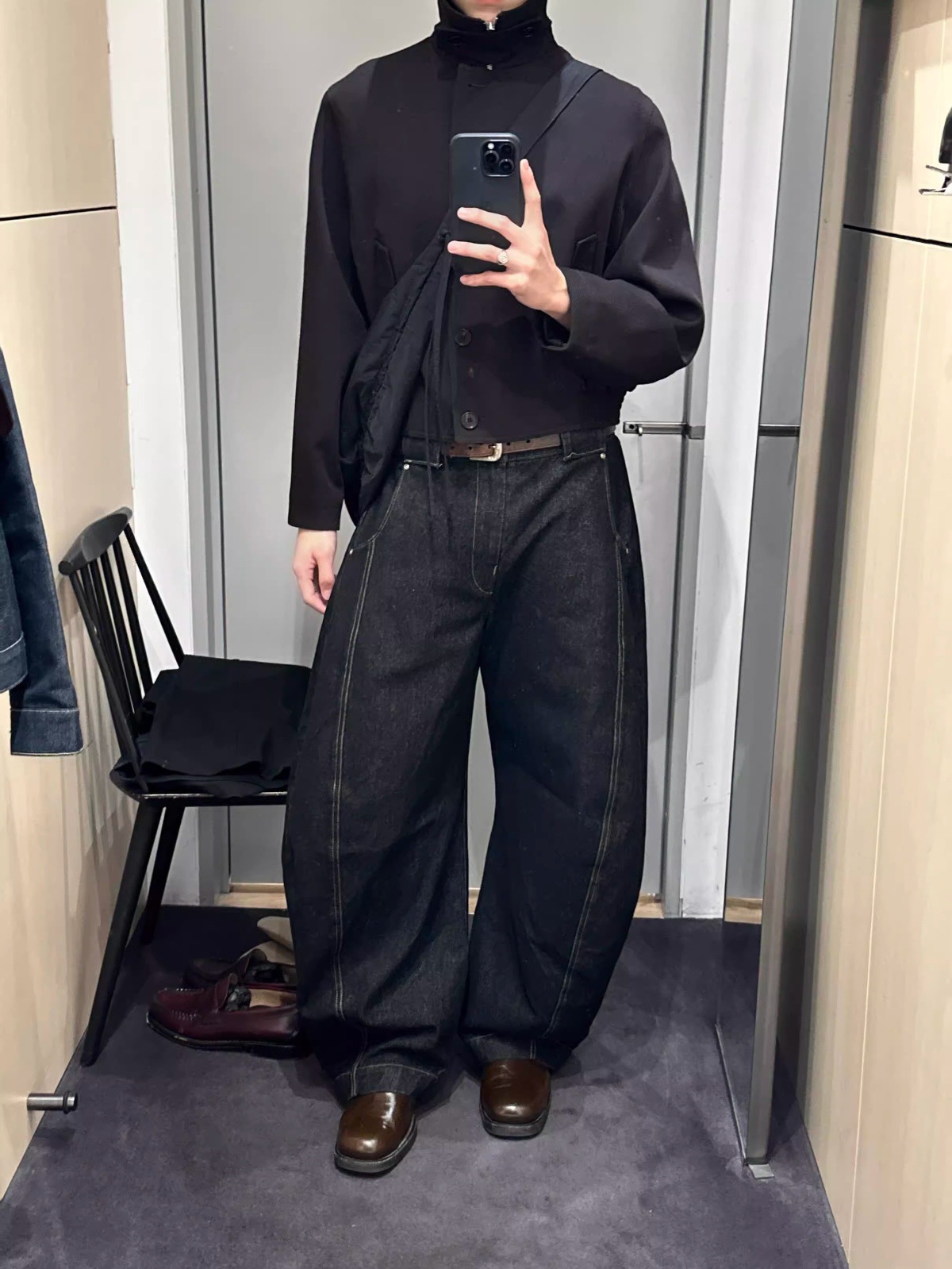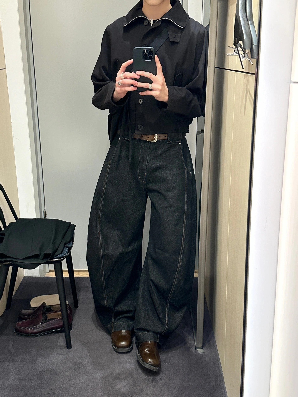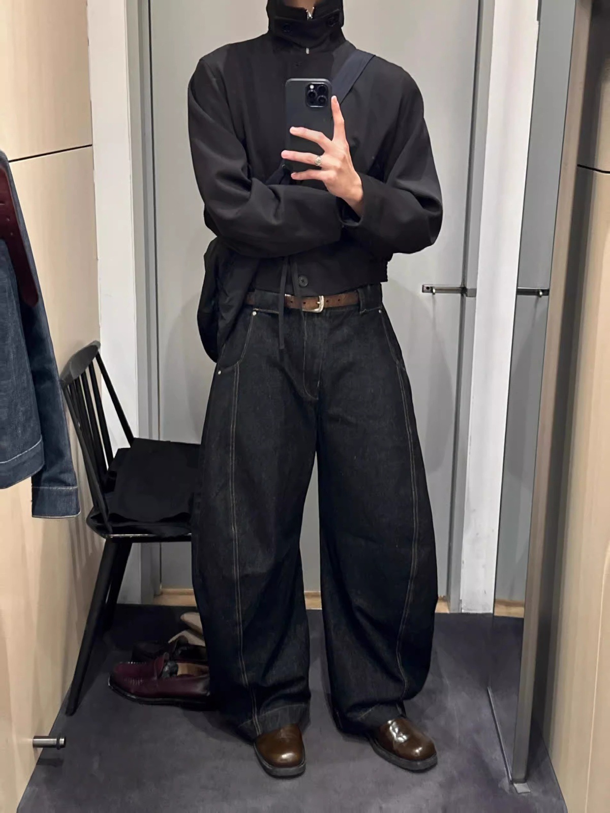 아메리칸 하이 스트리트 레트로 데님 블랙 와이드 레그 세이버 청바지 남성용 다용도 루즈 드레이프 다용도 캐주얼 바지스토어 가기