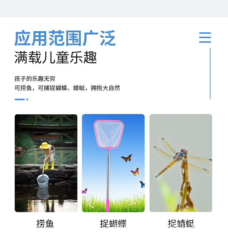 어린이용 스테인레스 스틸 다채로운 낚시 그물, 2단 개폐식 올챙이 잡기 나비 그물 가방, 어린이 곤충 그물 장난감스토어 가기