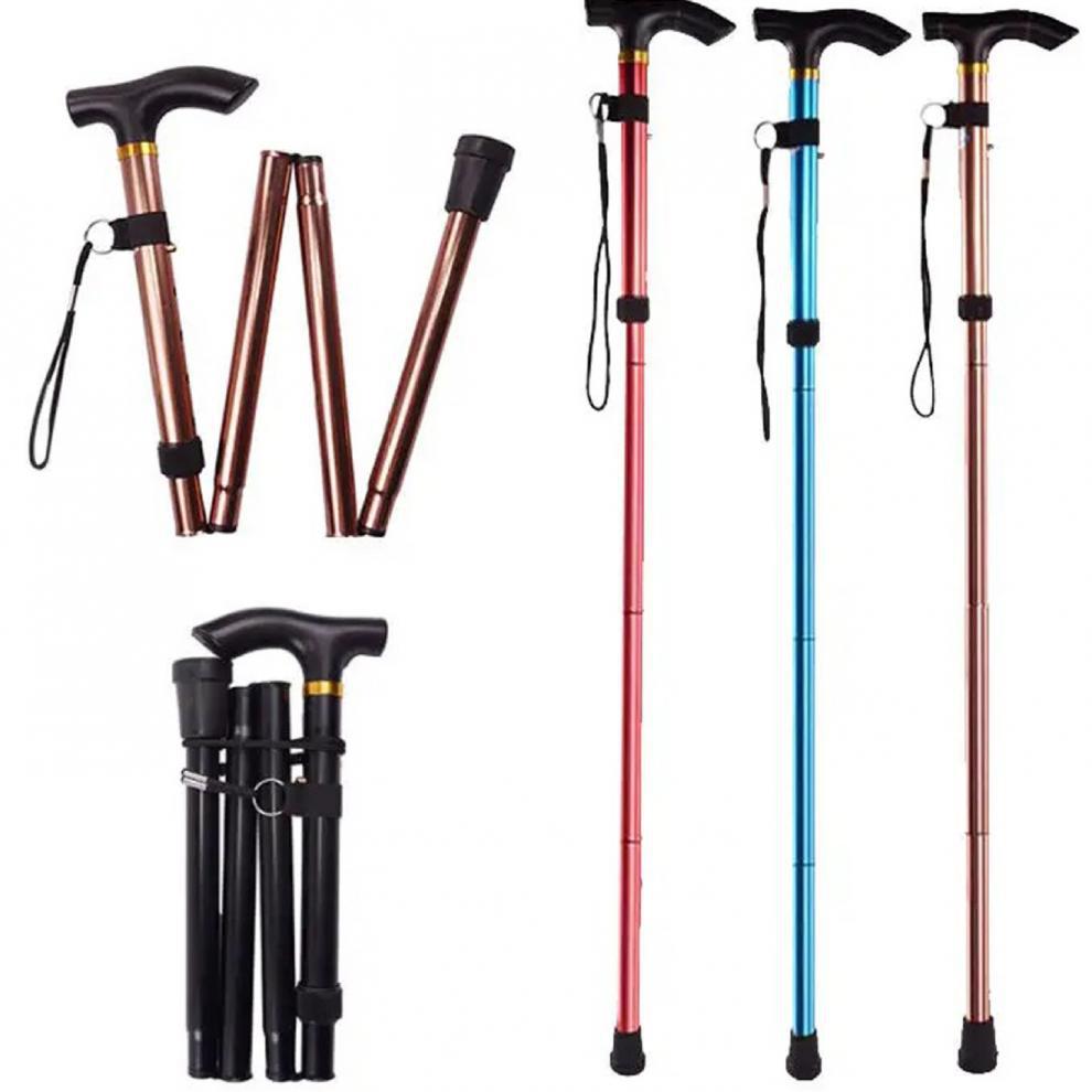 노인 경량 야외 하이킹을위한 휴대용 접이식 하이킹 스틱 조정 가능한 망원경 알루미늄 합금 미끄럼 방지 워킹 스틱스토어 가기