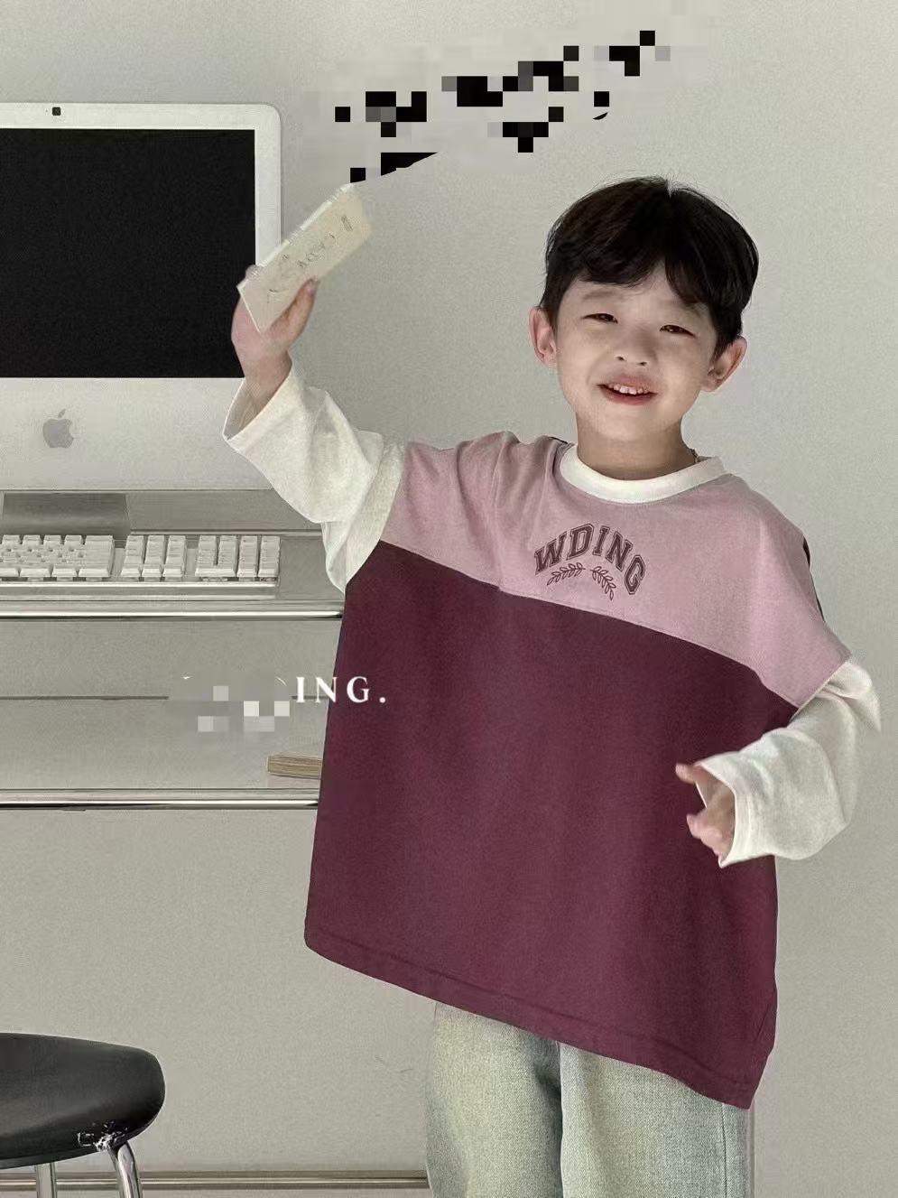 X56 레드 스티치 한국식 긴팔 티셔츠 소년 소녀, 중대형 아동용, 봄, 가을 새로운 스타일 탑, 반품 불가스토어 가기
