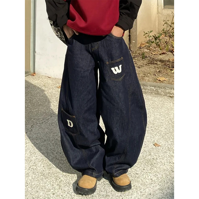 2025 남성과 여성을 위한 다크 스레드 청바지 봄, 가을 미국 복고풍 프린트 클린핏 루즈 와이드 팬츠스토어 가기