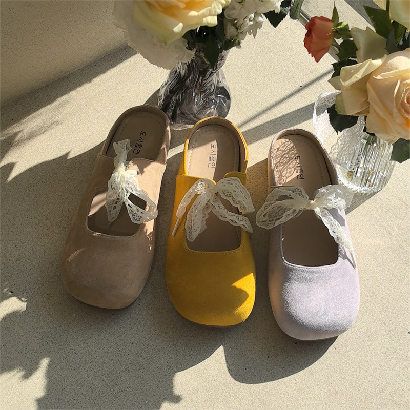 나비 호주 스타일 빈티지 레이스 활 발가락 하프 슬리퍼 여성 의상 2025 새로운 봄 올 매치 버켄 네스 신발