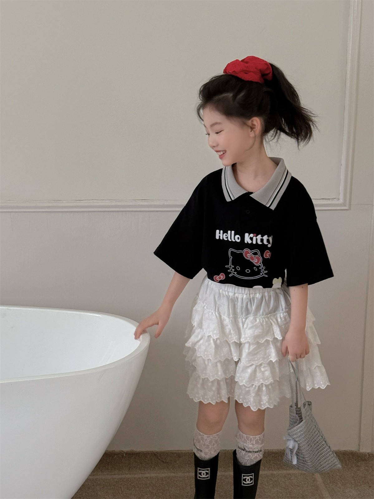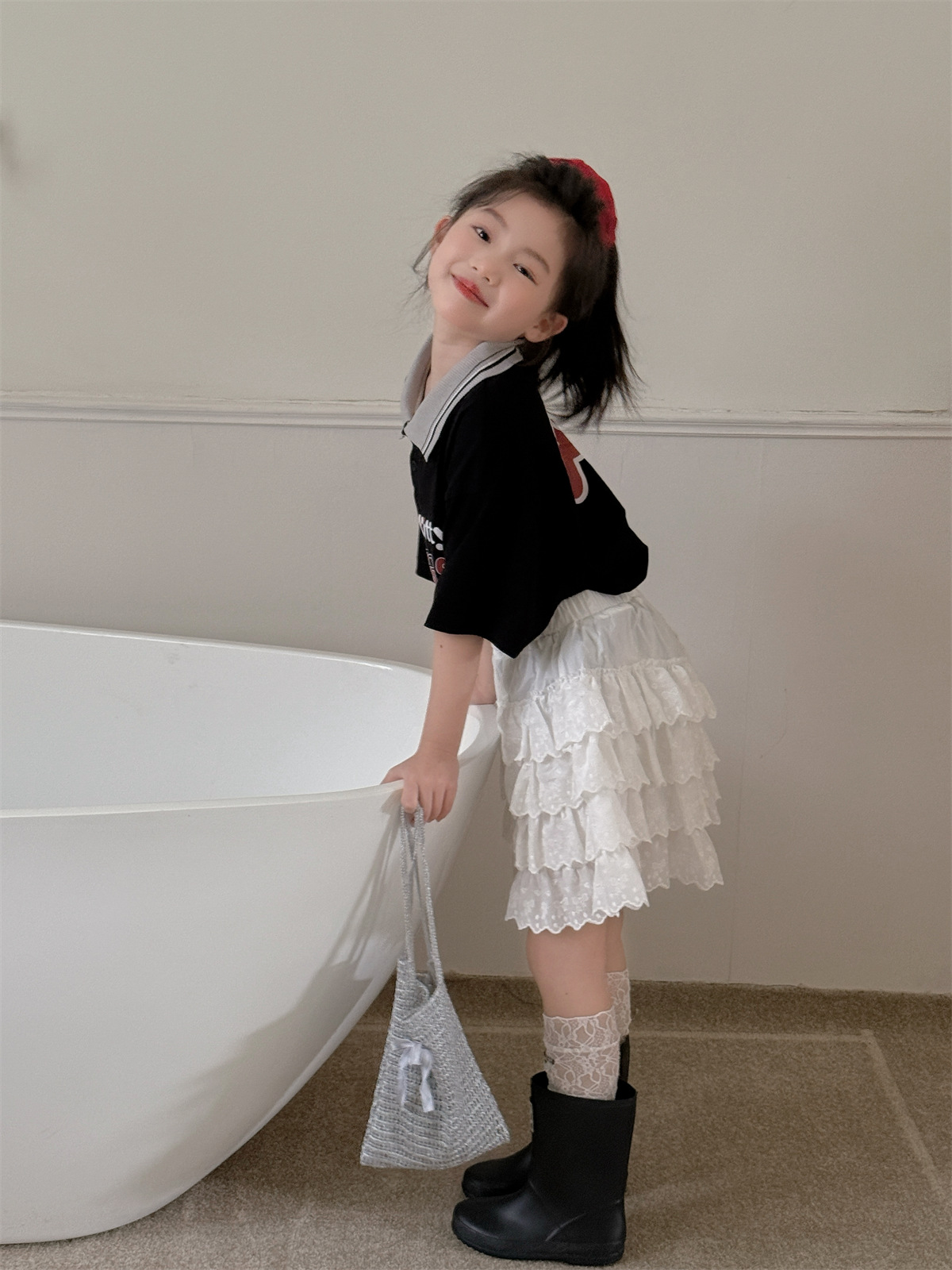 꽃과 어린이 의류 소녀 culottes 2025 여름 새로운 한국 어린이 서양식 레이스 culottes 여자 올 매치 패션스토어 가기