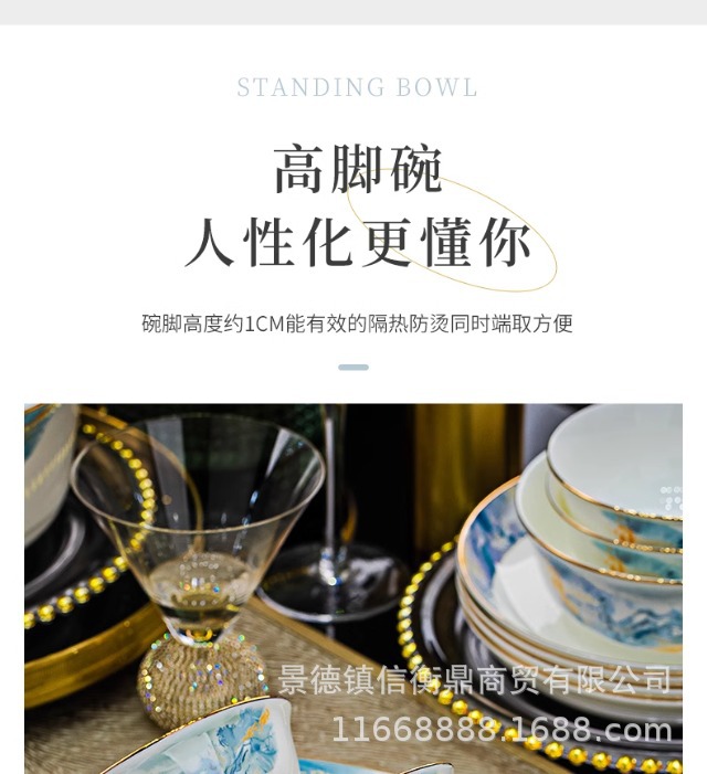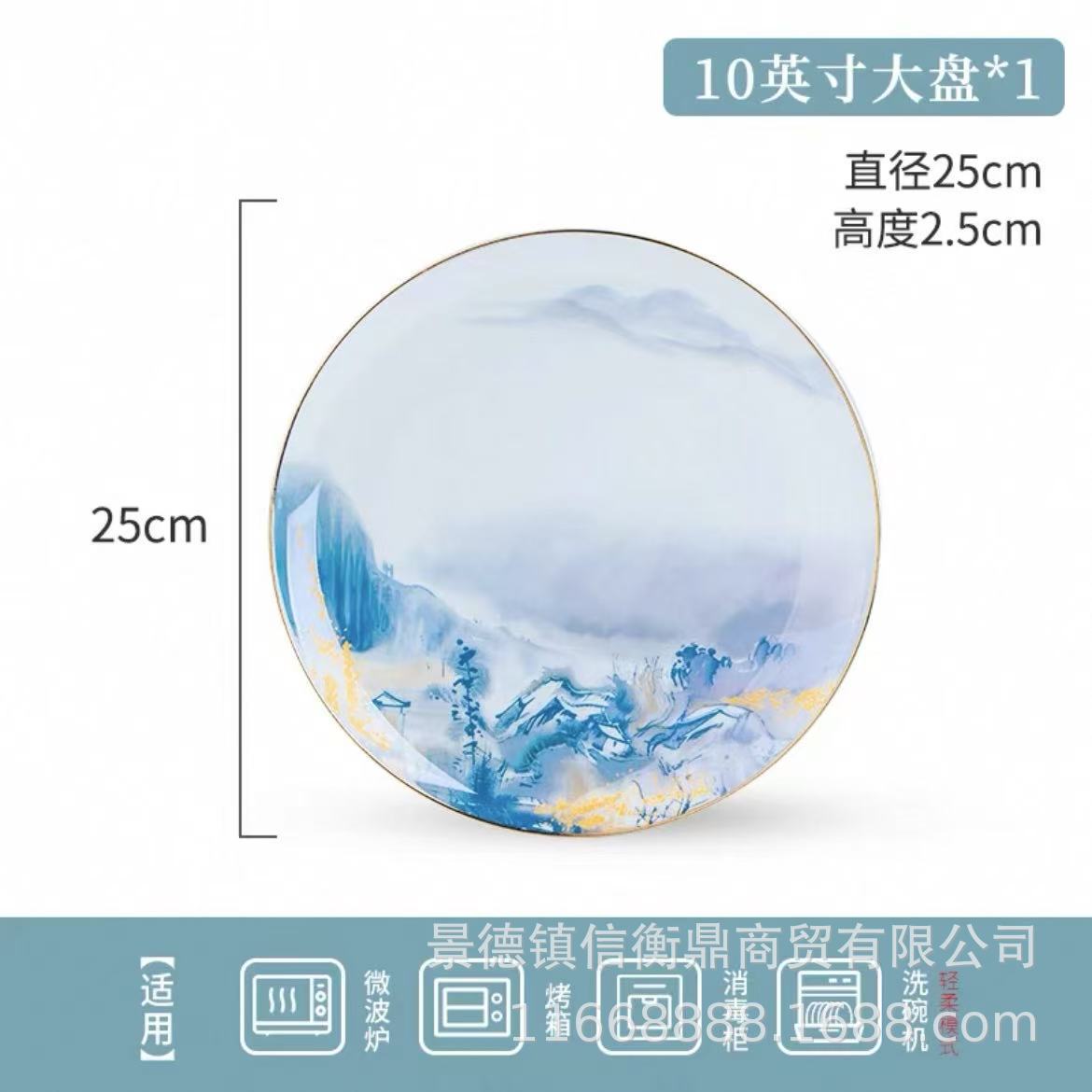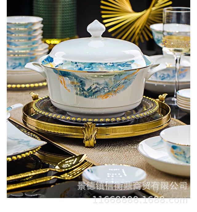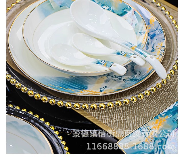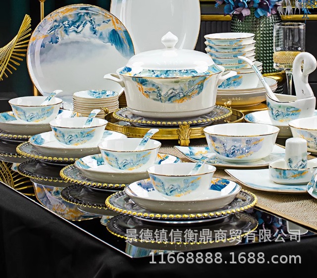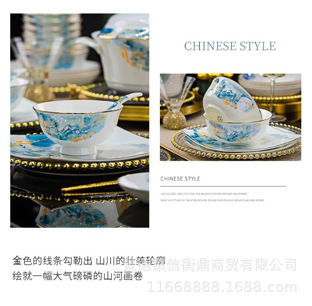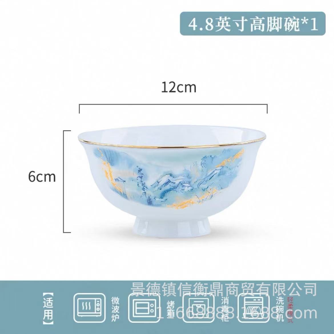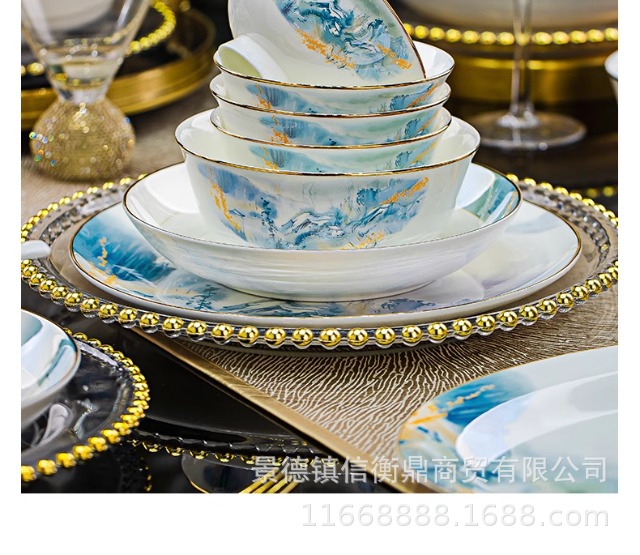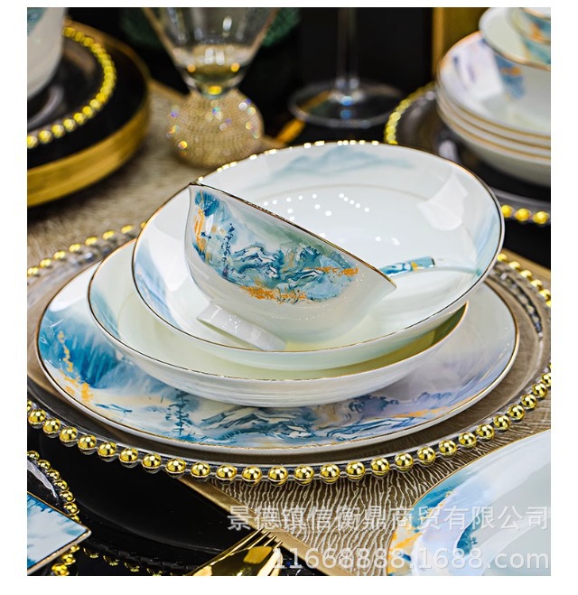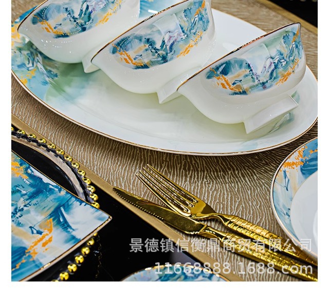 경덕진 세라믹 밥 그릇, 접시, 가정용 중국 본차이나 식기 2025 새로운 그릇, 접시 및 젓가락 무료 조합스토어 가기