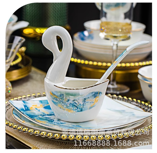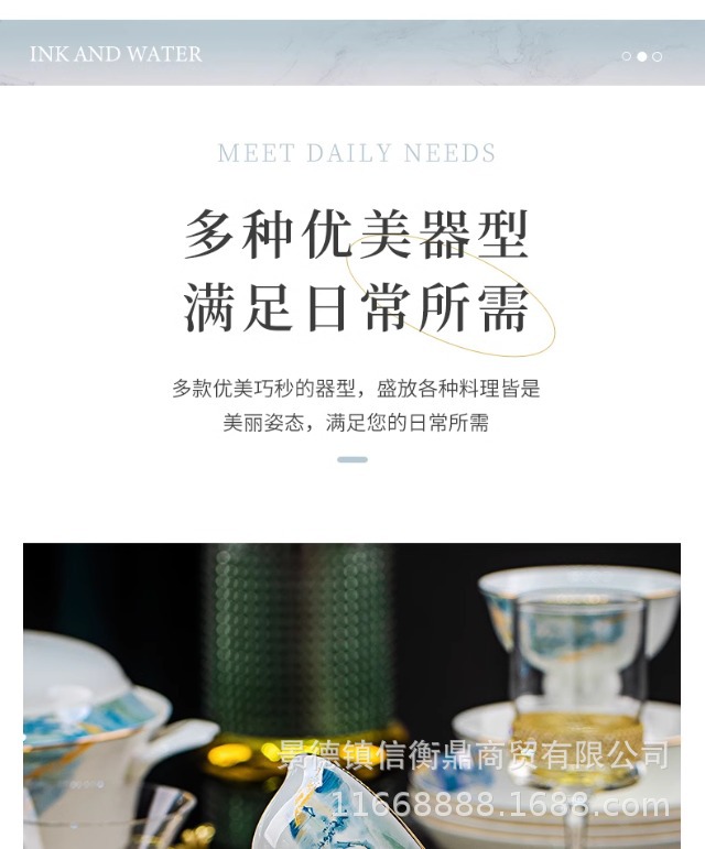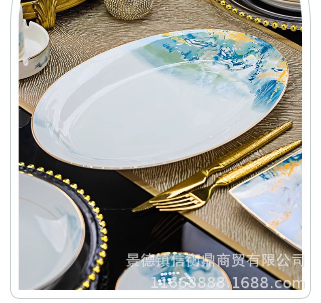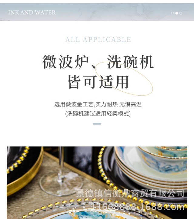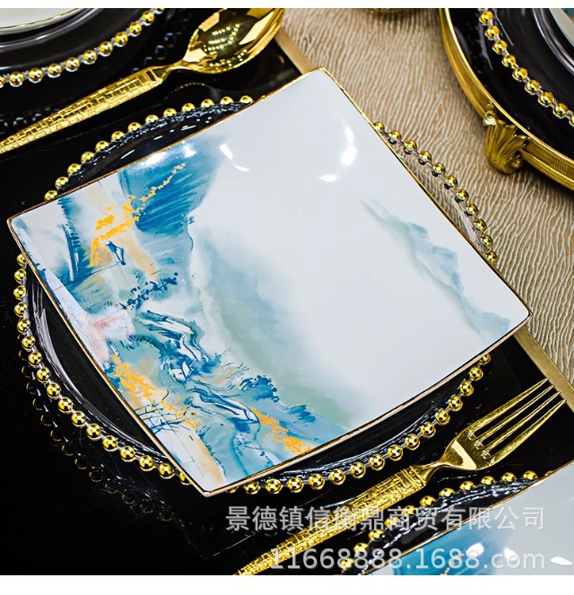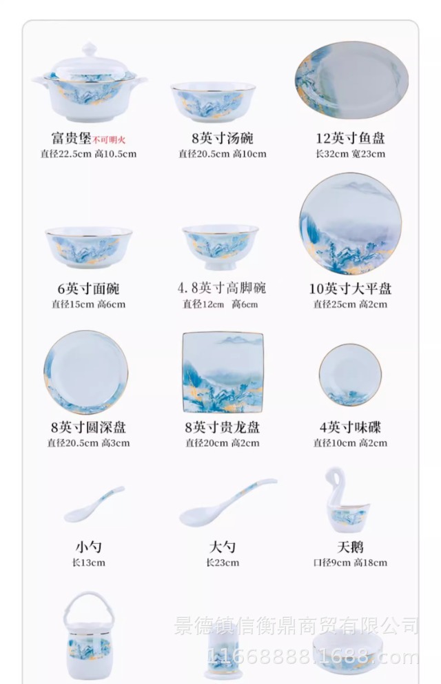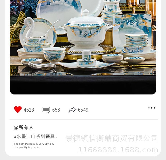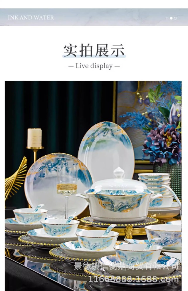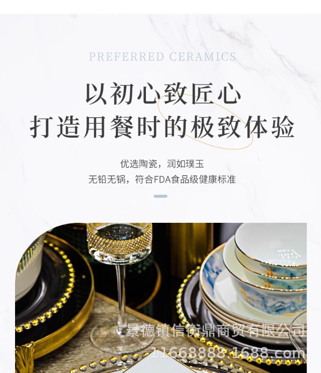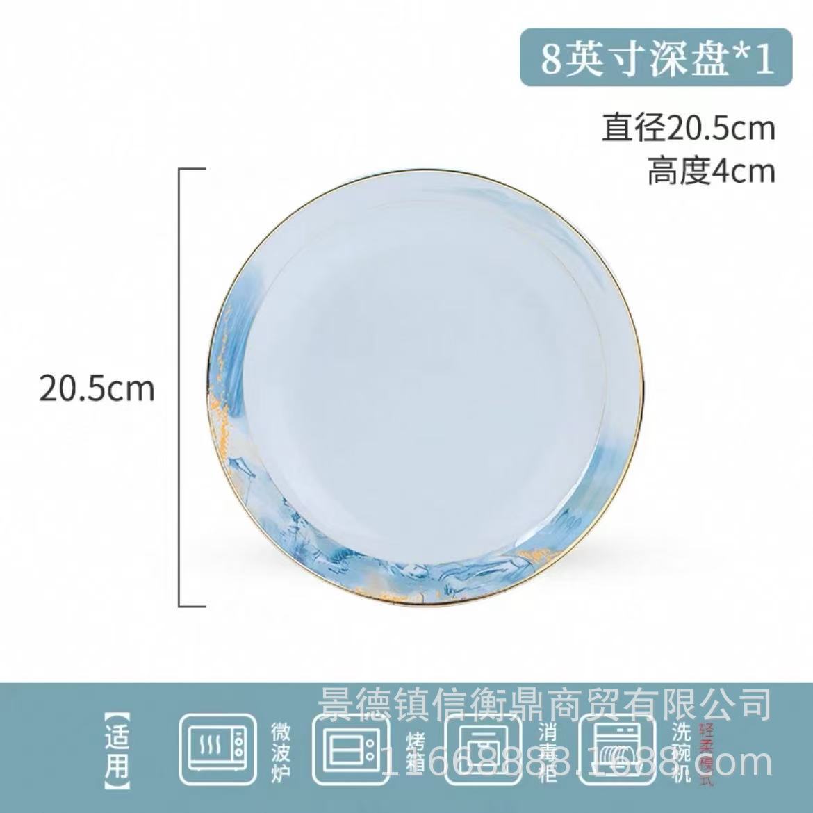 경덕진 세라믹 밥 그릇, 접시, 가정용 중국 본차이나 식기 2025 새로운 그릇, 접시 및 젓가락 무료 조합스토어 가기