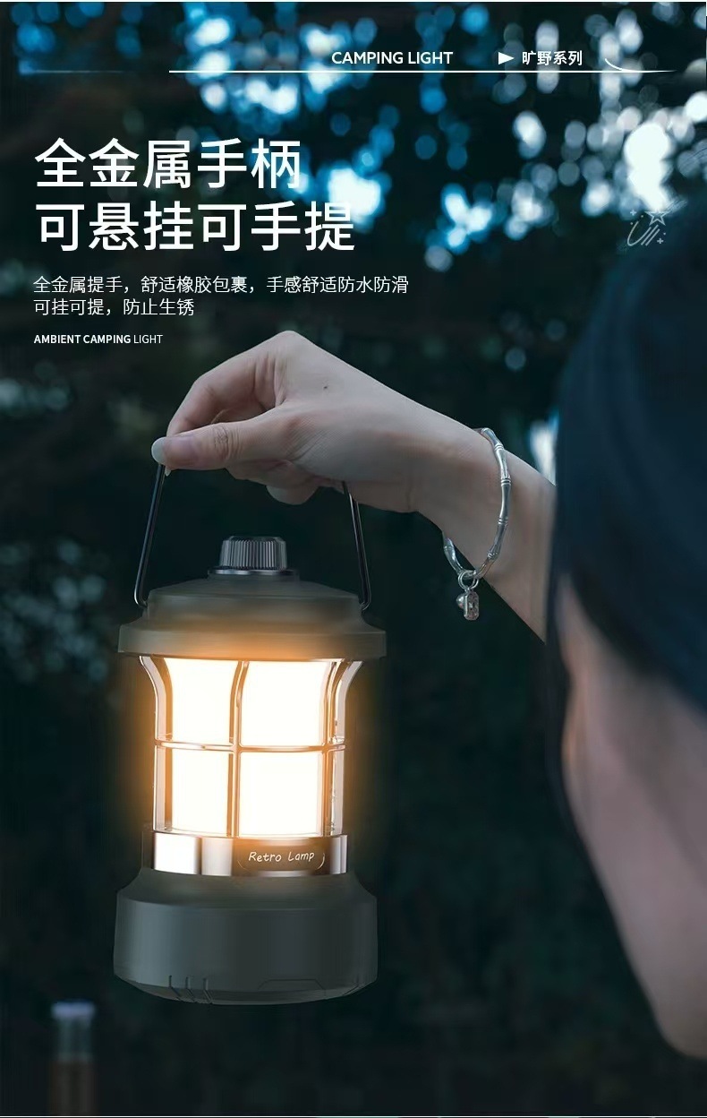 다기능 복고풍 말 랜턴 스트링 라이트 캠핑 라이트 휴대용 라이트 야외 조명 무단계 디밍 충전식 텐트 라이트스토어 가기