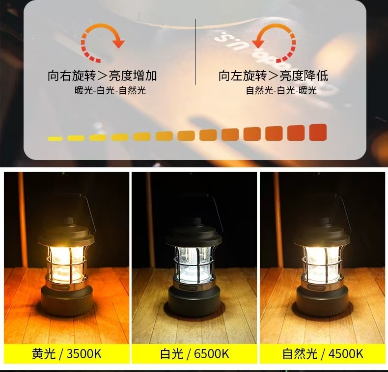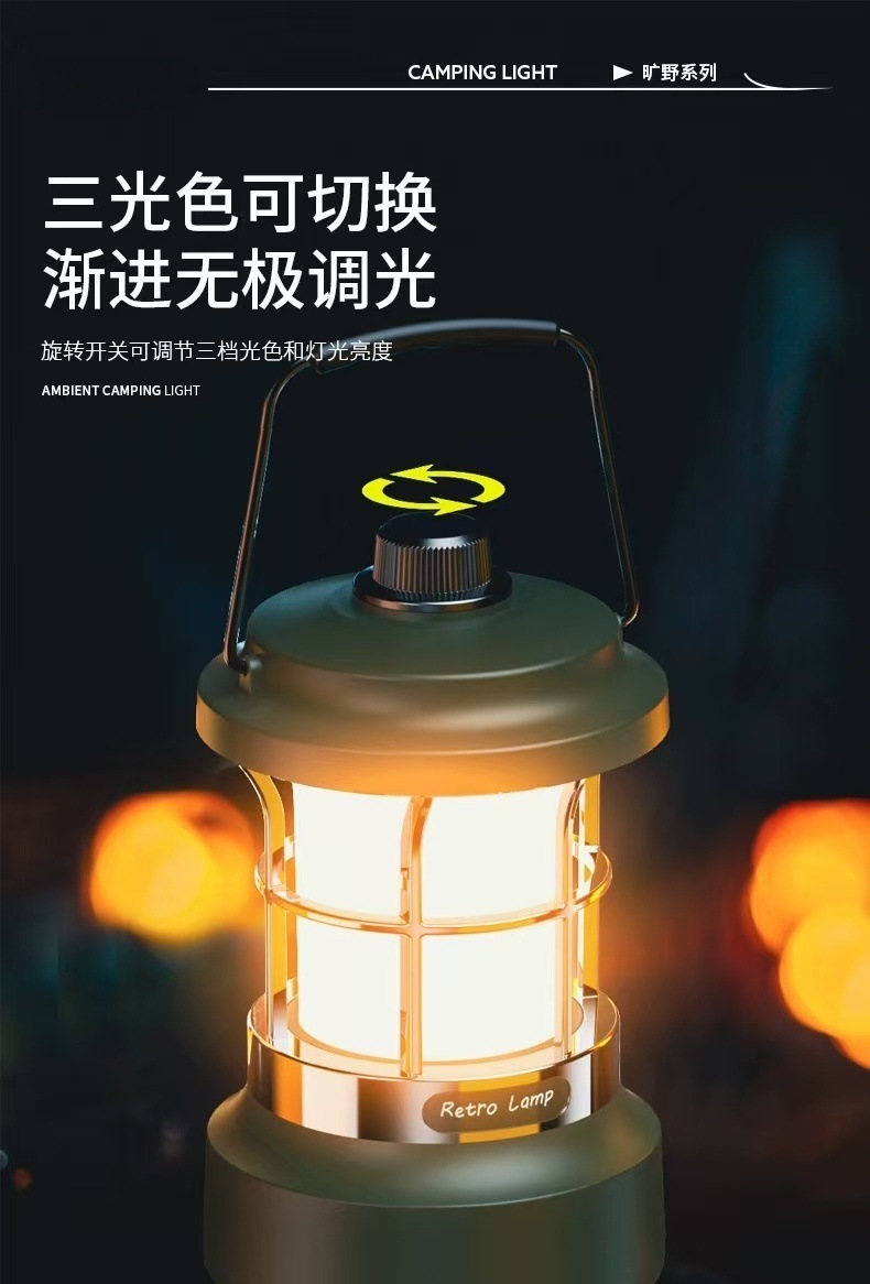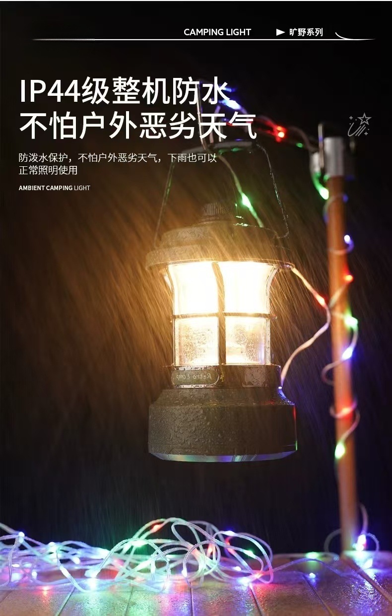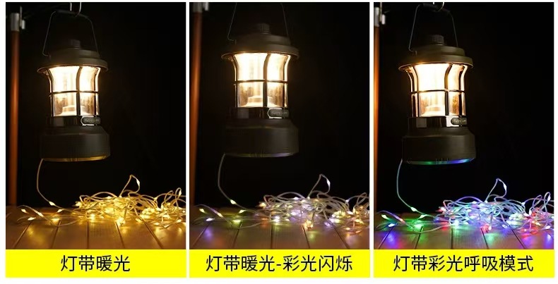 다기능 복고풍 말 랜턴 스트링 라이트 캠핑 라이트 휴대용 라이트 야외 조명 무단계 디밍 충전식 텐트 라이트