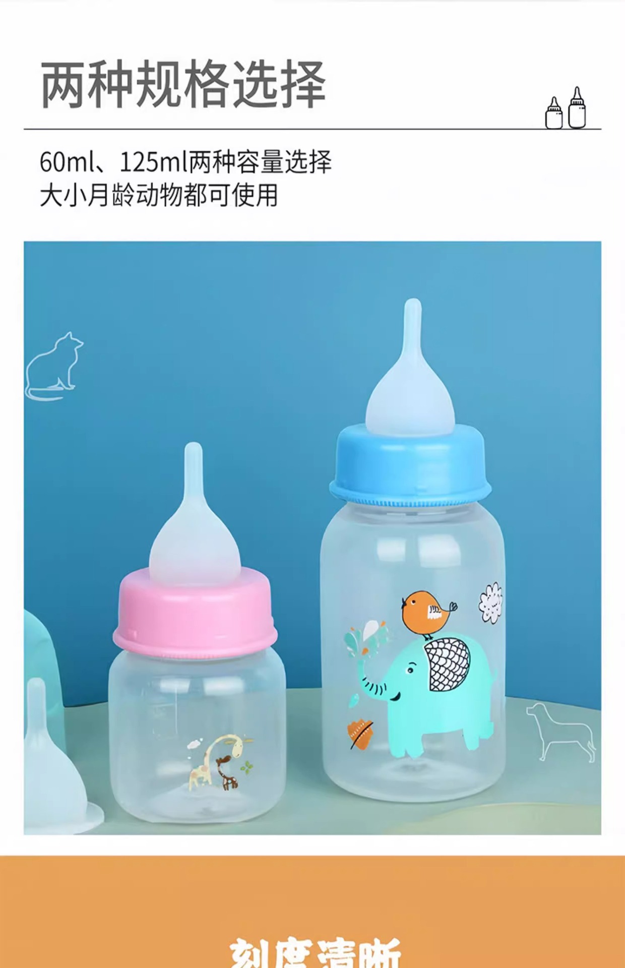 • 애완동물 젖병 [60ML] 청색 관통바늘
