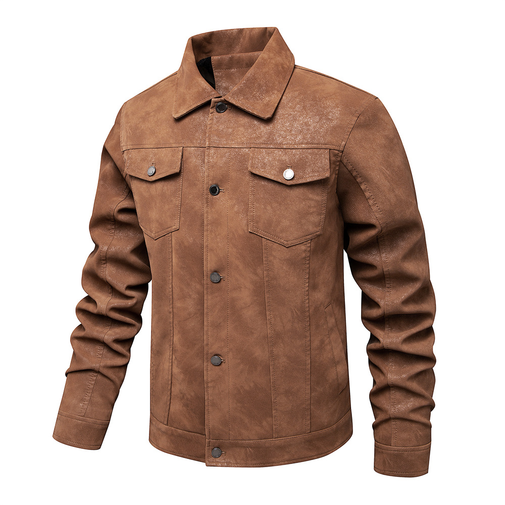 2025 국경 새 남성 옷깃 가죽 자켓 가슴 버튼 포켓 캐주얼 슬림 pu 가죽 재킷