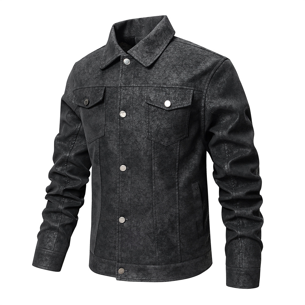 2025 국경 새 남성 옷깃 가죽 자켓 가슴 버튼 포켓 캐주얼 슬림 pu 가죽 재킷스토어 가기