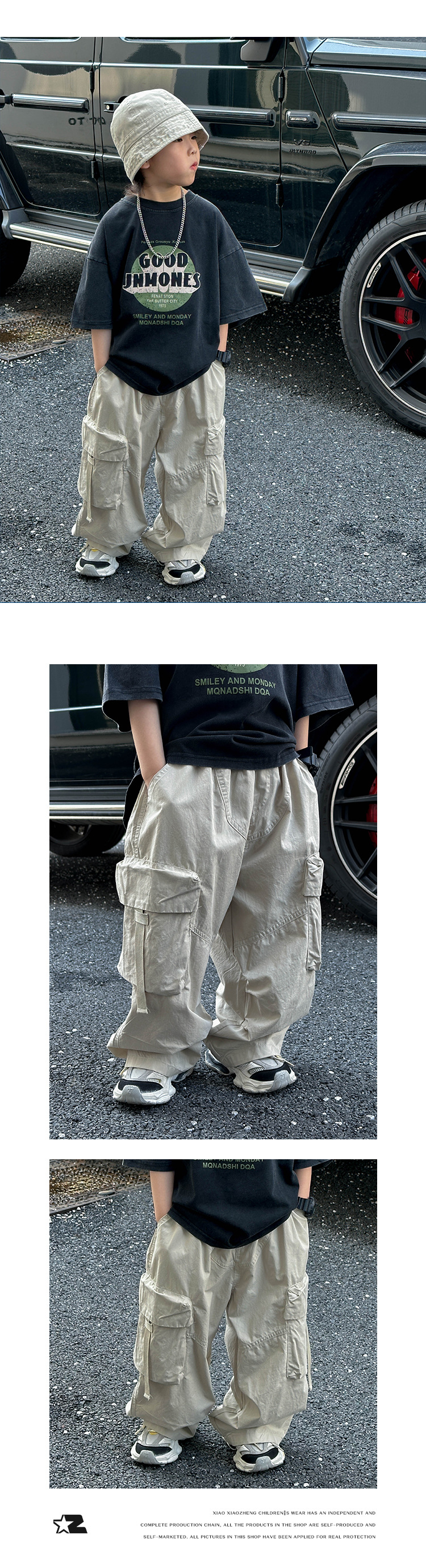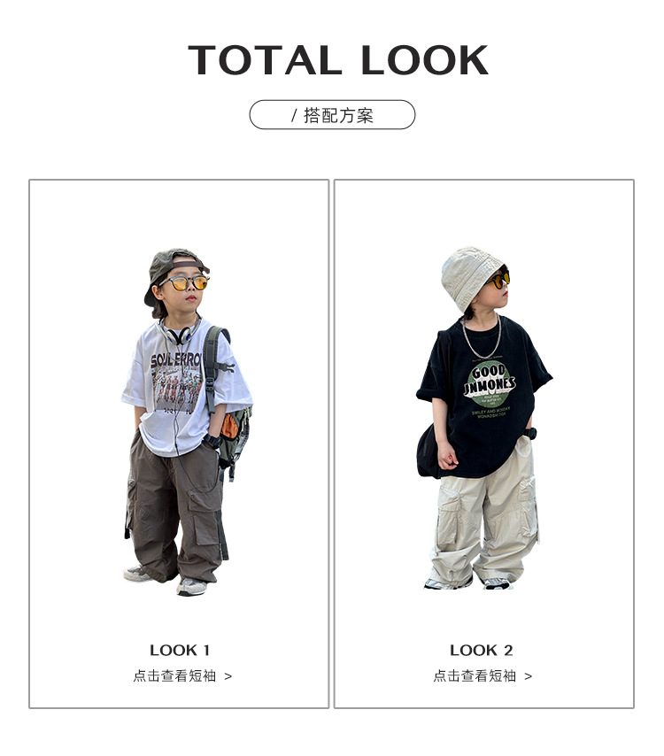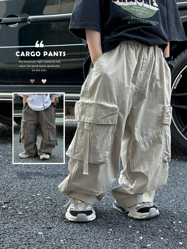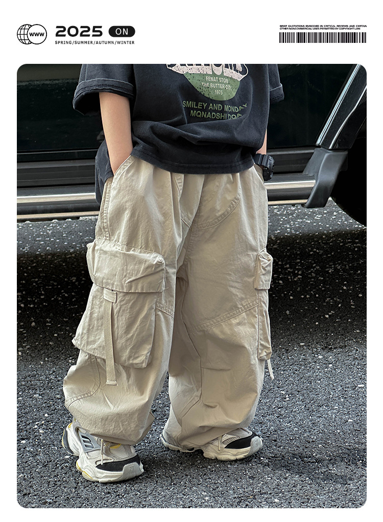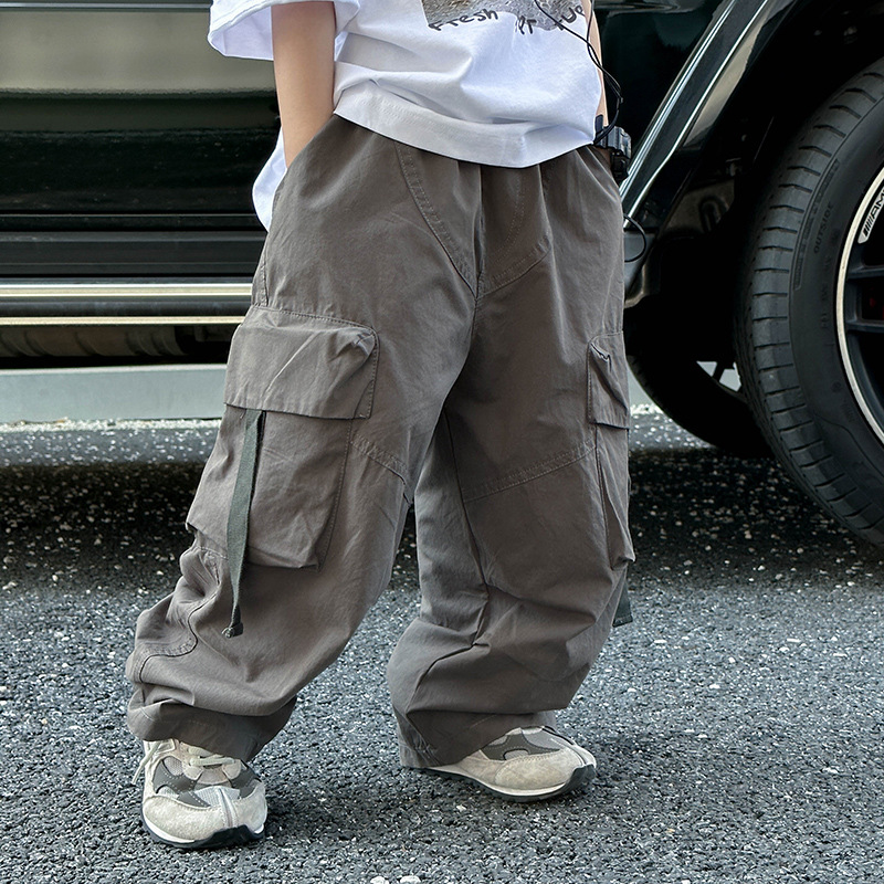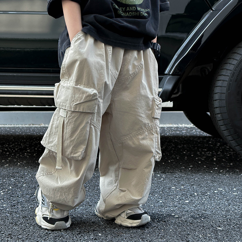 어린이 캐주얼 코일 팬츠 2025 여름 새로운 어린이 한국 스타일 리퍼 핸스섬 와이드 레그 팬츠 어린이 올매치 여름 패션