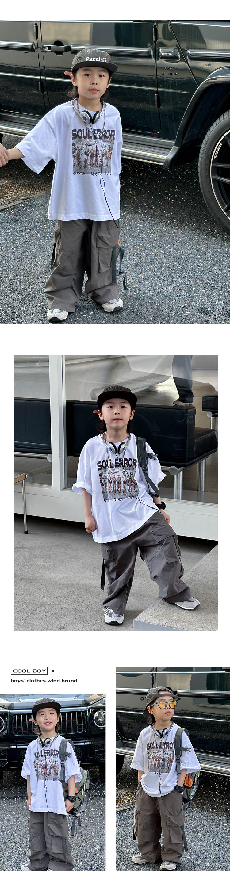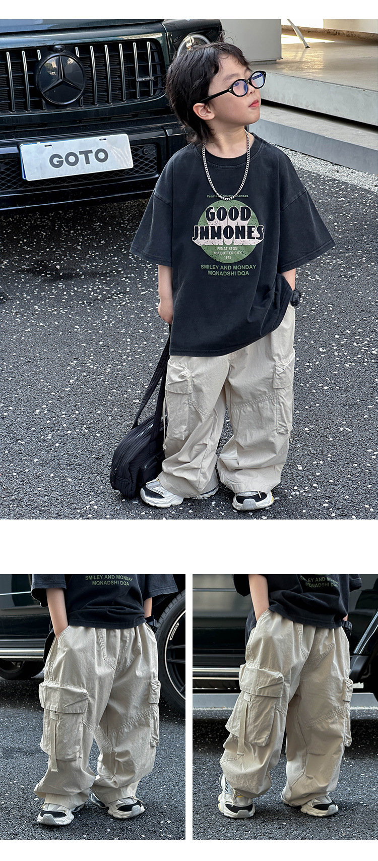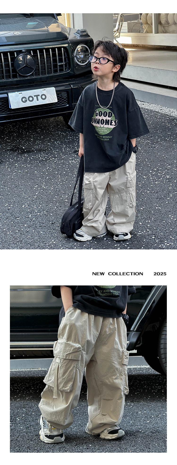 어린이 캐주얼 코일 팬츠 2025 여름 새로운 어린이 한국 스타일 리퍼 핸스섬 와이드 레그 팬츠 어린이 올매치 여름 패션