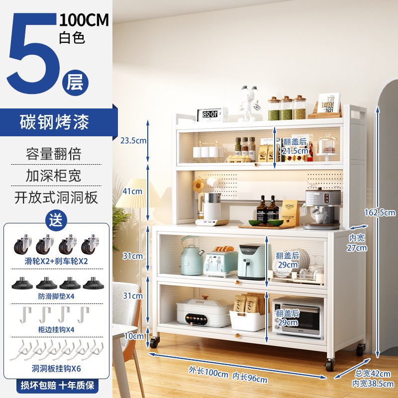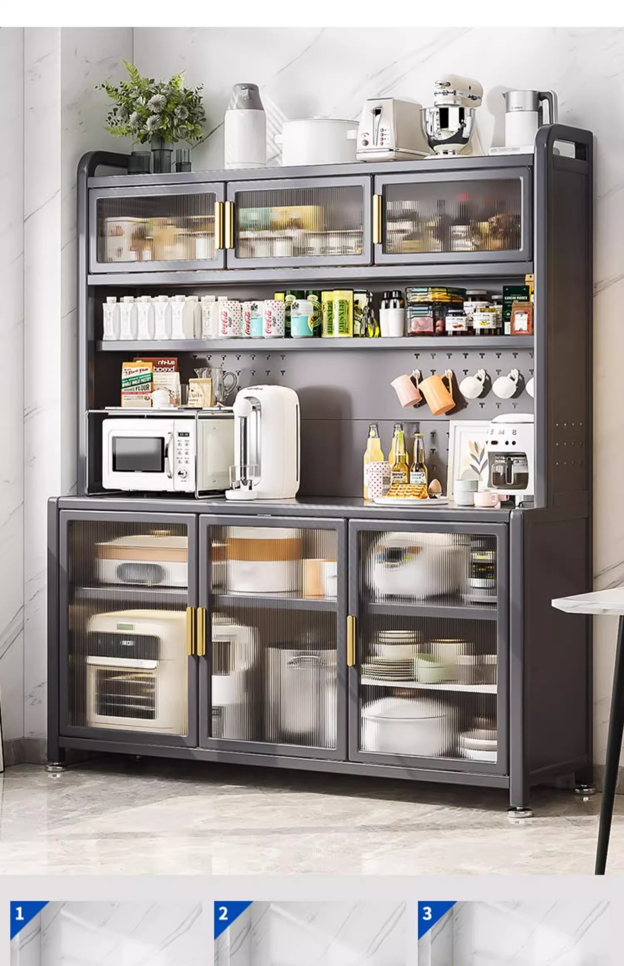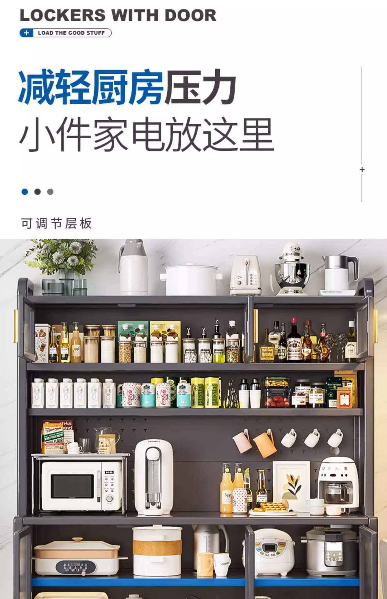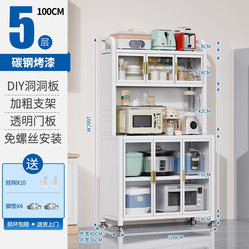 국경 간 주방 찬장 보관 캐비닛 도어가있는 다층 전자 레인지 냄비 보관 바닥 스탠딩 찬장 다기능 보관 랙