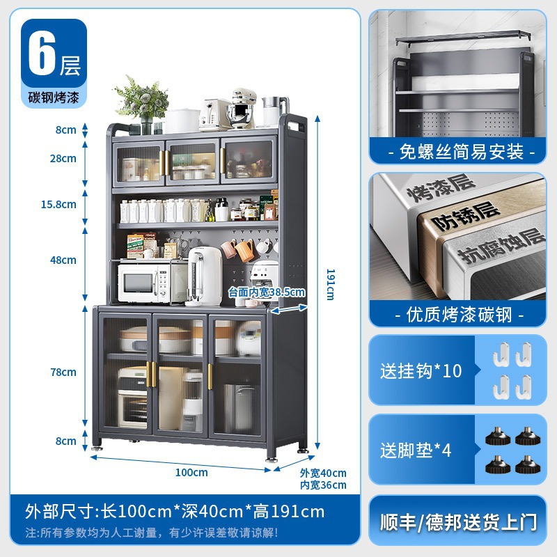 국경 간 주방 찬장 보관 캐비닛 도어가있는 다층 전자 레인지 냄비 보관 바닥 스탠딩 찬장 다기능 보관 랙스토어 가기