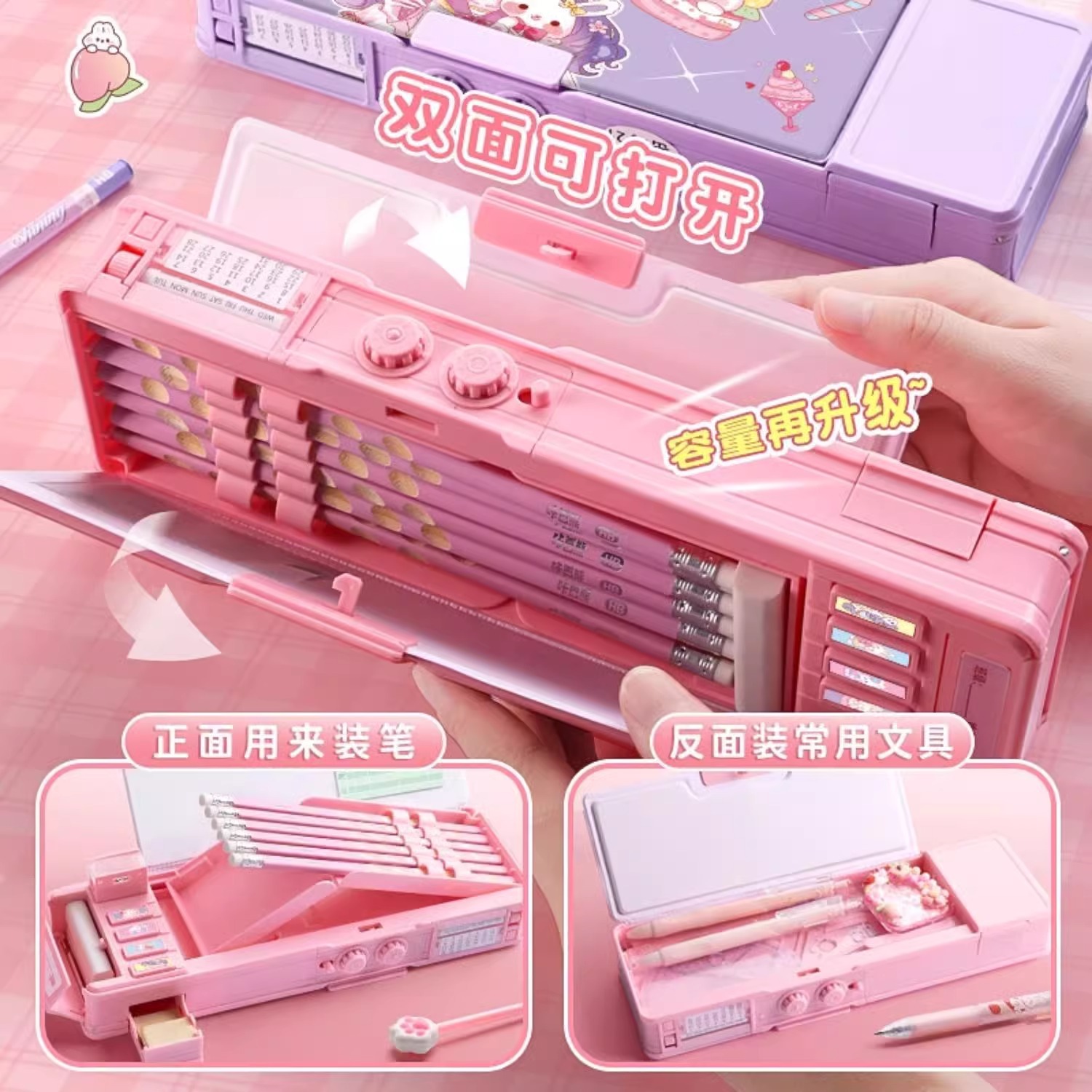 다기능 문구 상자 소녀 암호 잠금 펜 상자 초등학교 어린이 소년 더블 레이어 대용량 오르간 연필 케이스