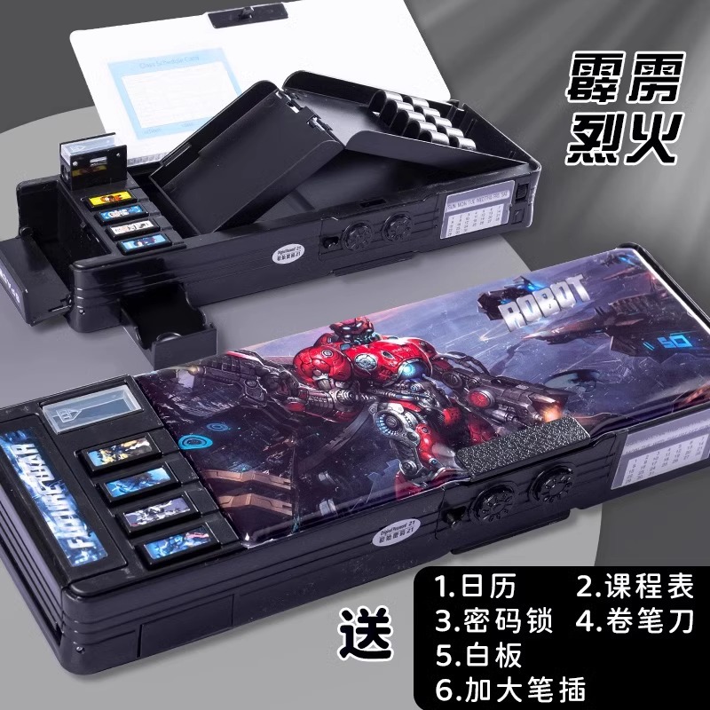 다기능 문구 상자 소녀 암호 잠금 펜 상자 초등학교 어린이 소년 더블 레이어 대용량 오르간 연필 케이스스토어 가기