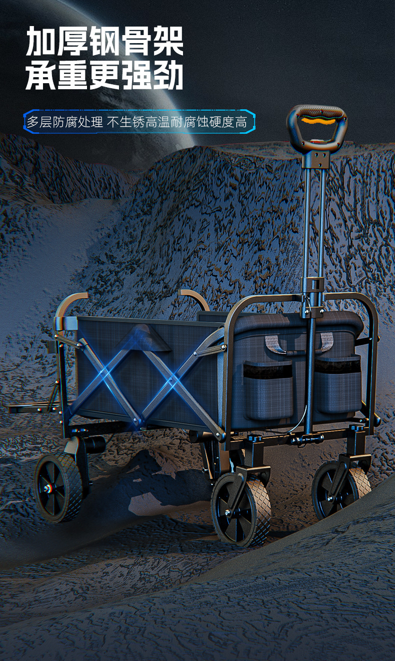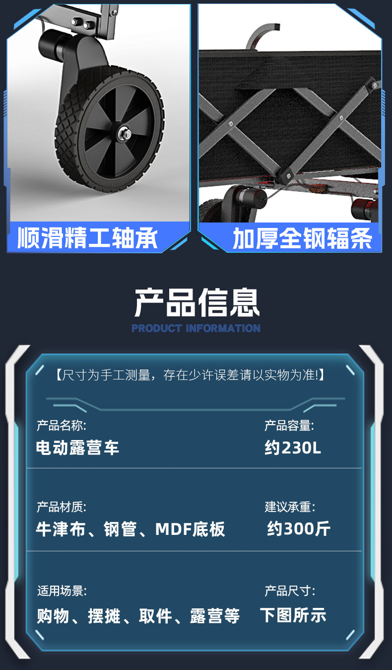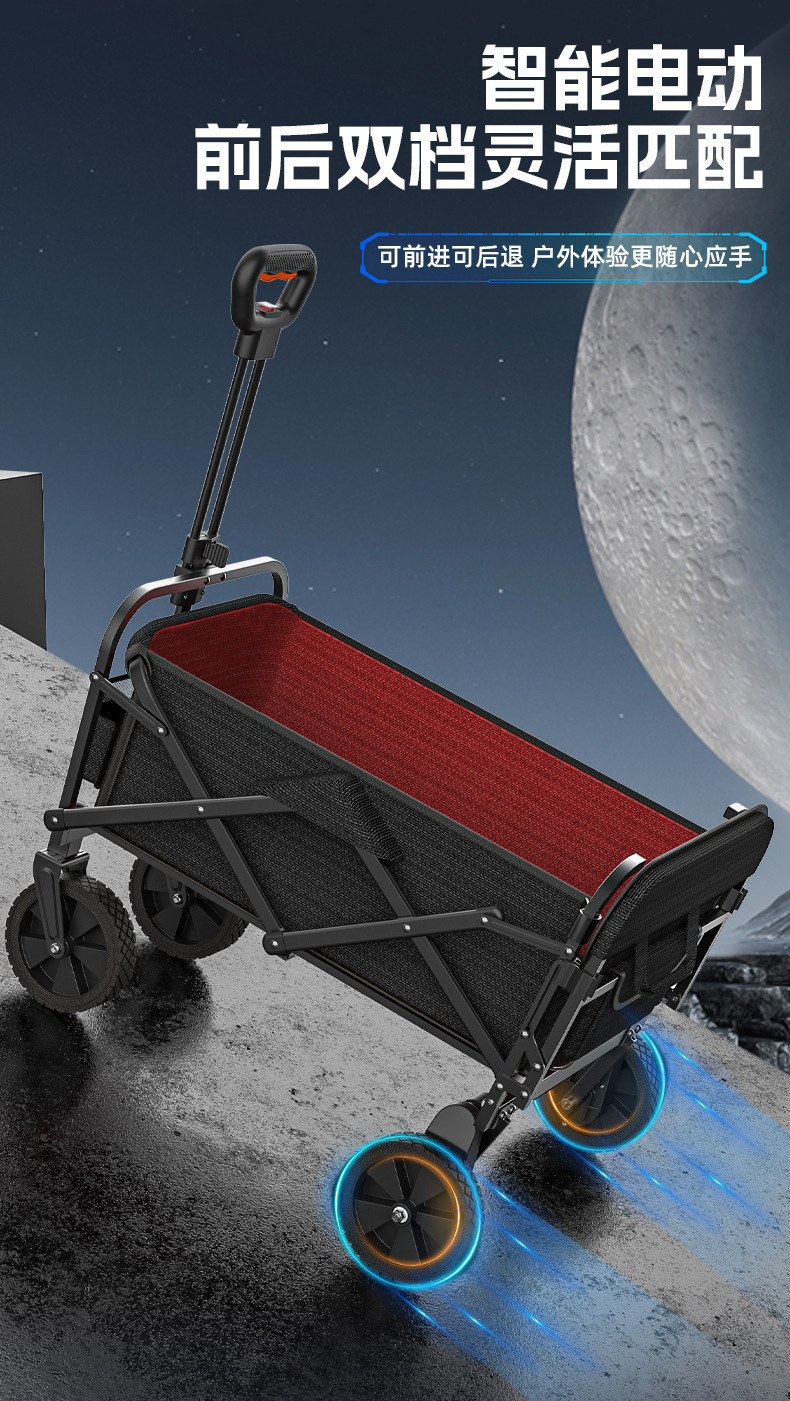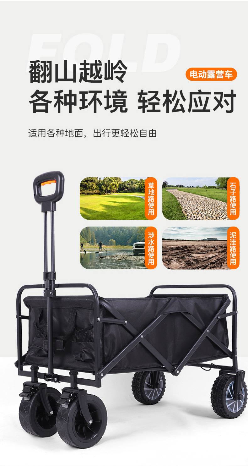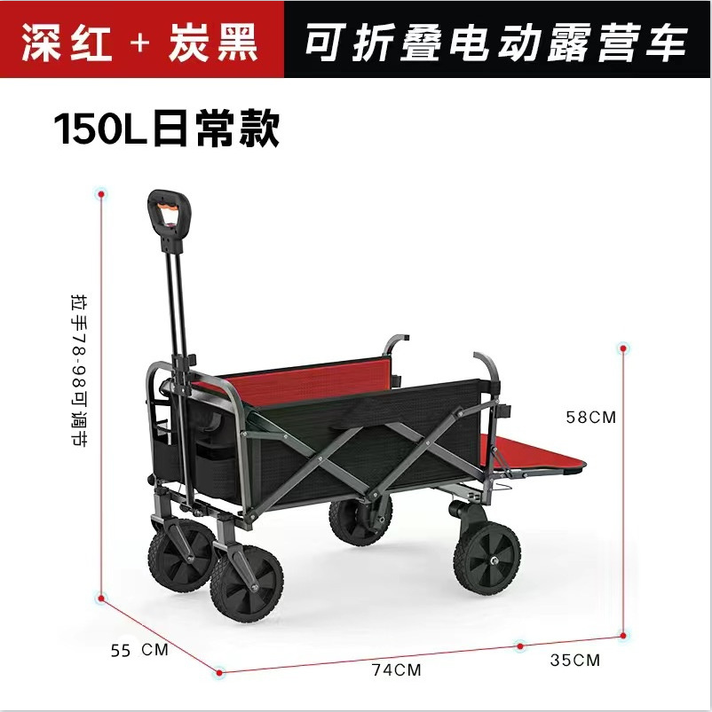 전기 캠핑카 야외 캠핑 트레일러 전원 보조 손으로 뽑은 피크닉 트롤리 어린이 앉고 누워있는 캠프 카