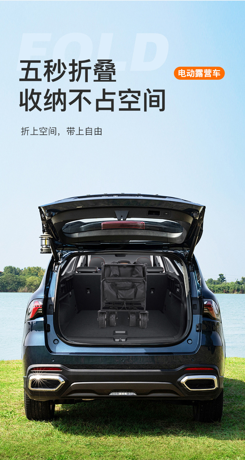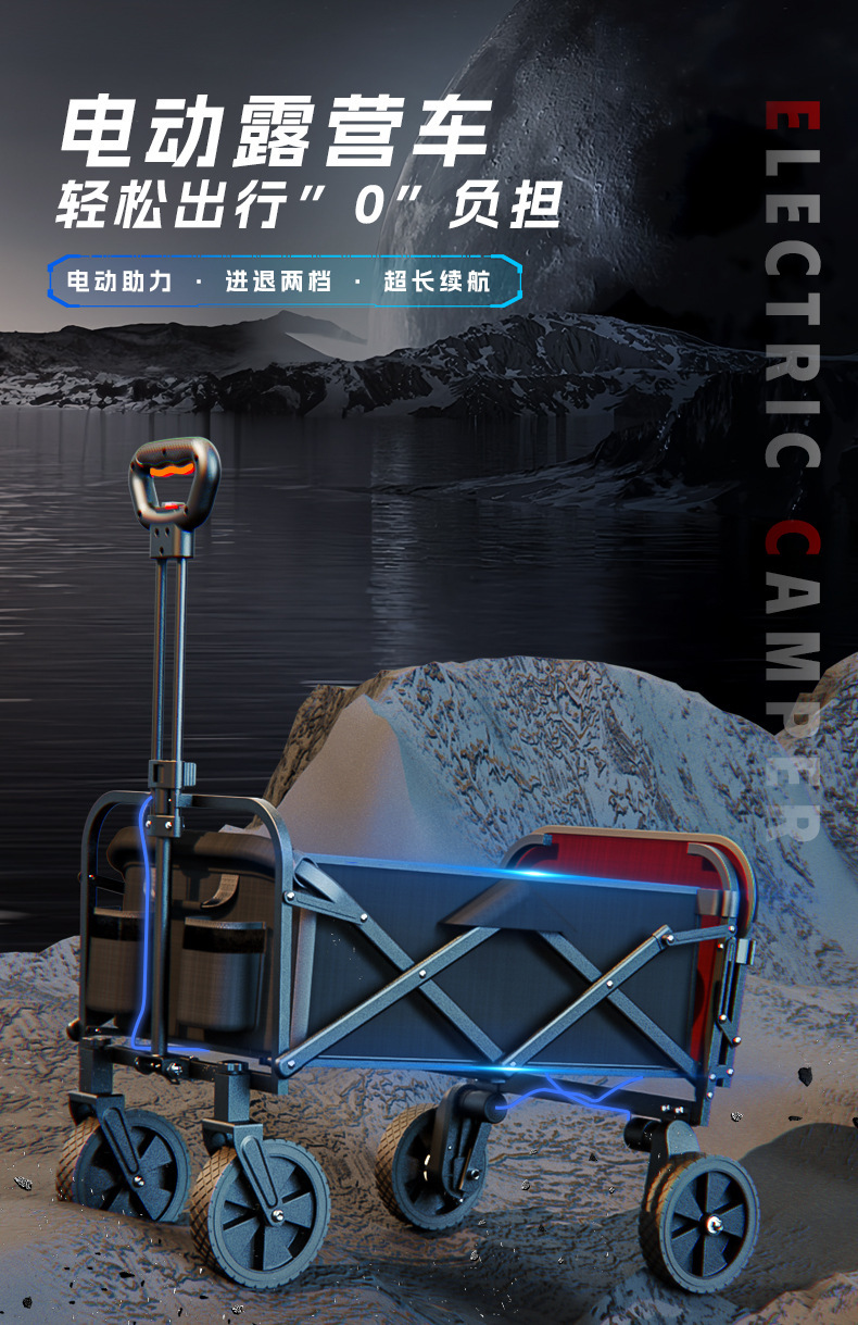 전기 캠핑카 야외 캠핑 트레일러 전원 보조 손으로 뽑은 피크닉 트롤리 어린이 앉고 누워있는 캠프 카스토어 가기