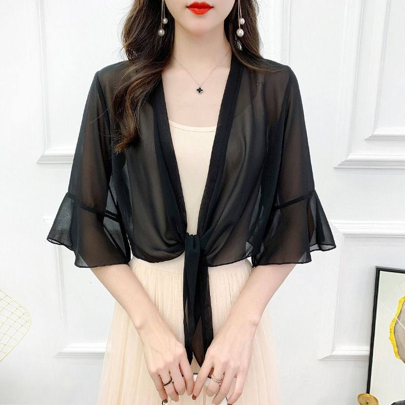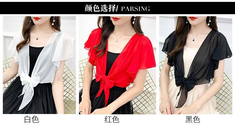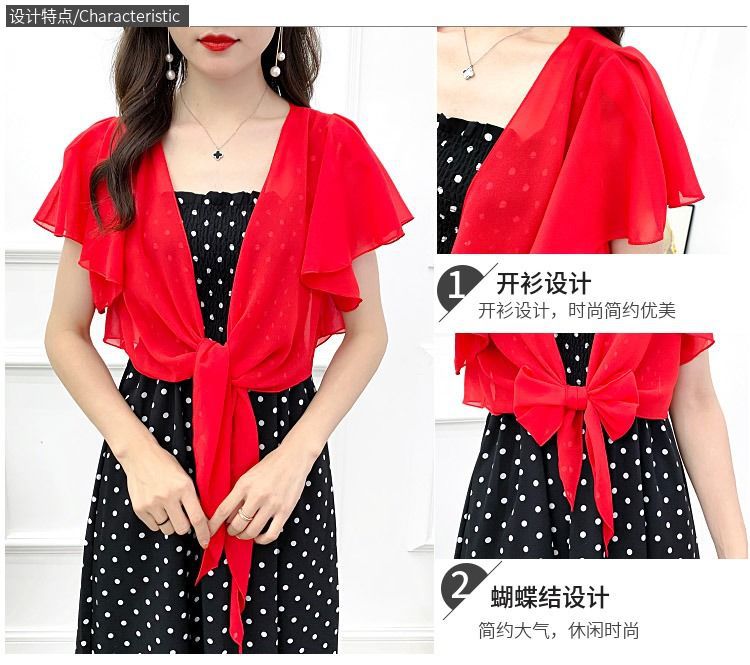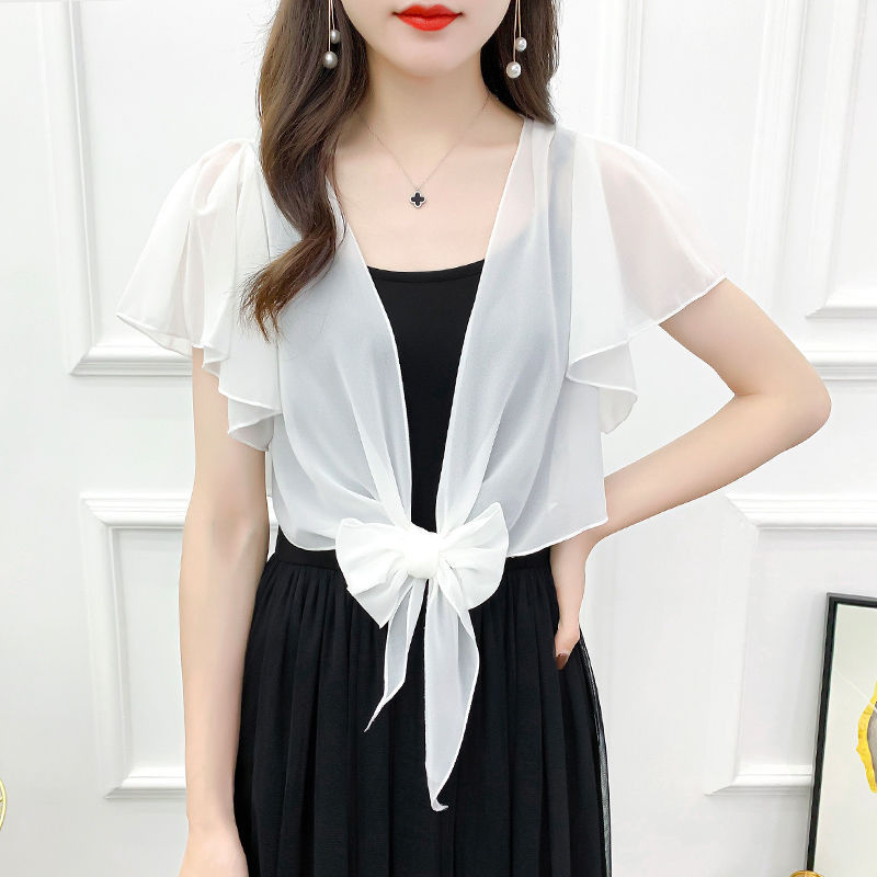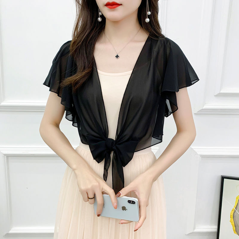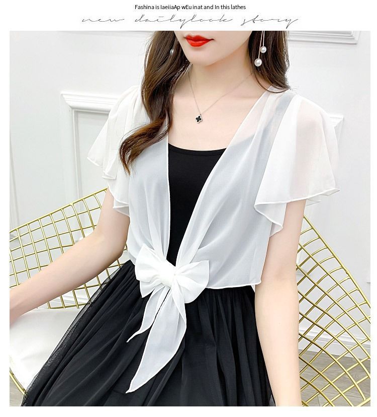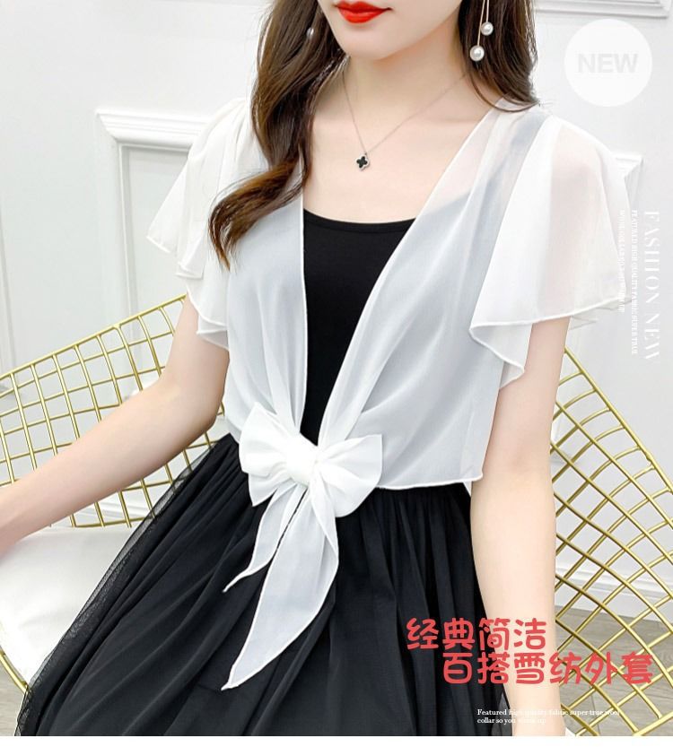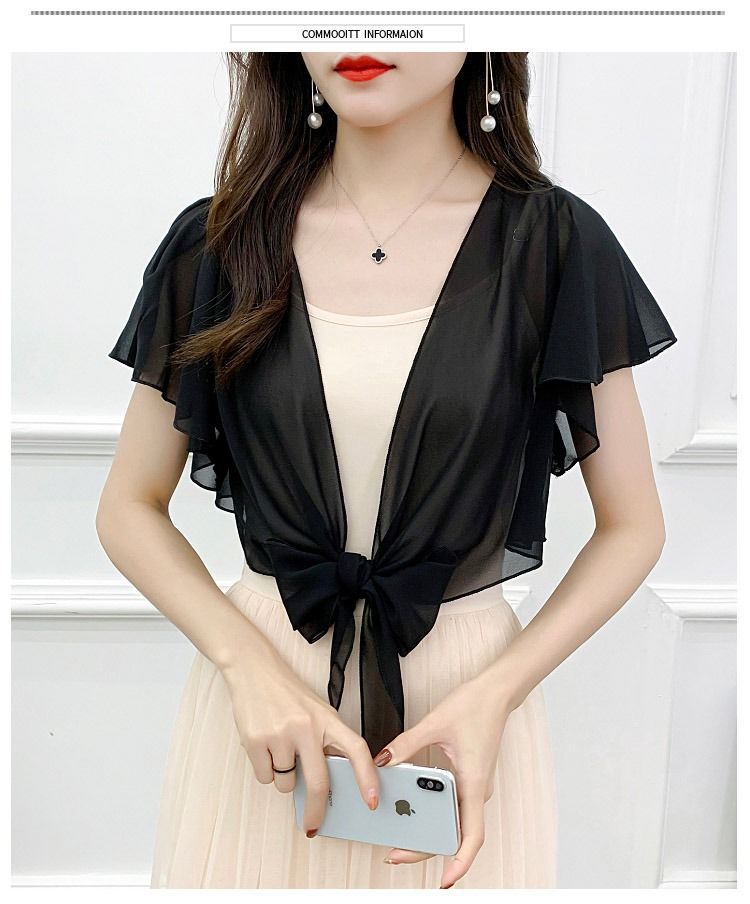 여름 얇은 숄, 여성용 짧은 자외선 차단 셔츠, 쉬폰 가디건, 서스펜더 코트, 스커트스토어 가기