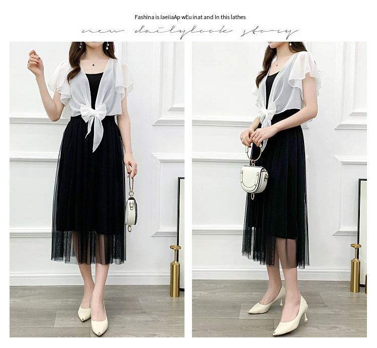 여름 얇은 숄, 여성용 짧은 자외선 차단 셔츠, 쉬폰 가디건, 서스펜더 코트, 스커트
