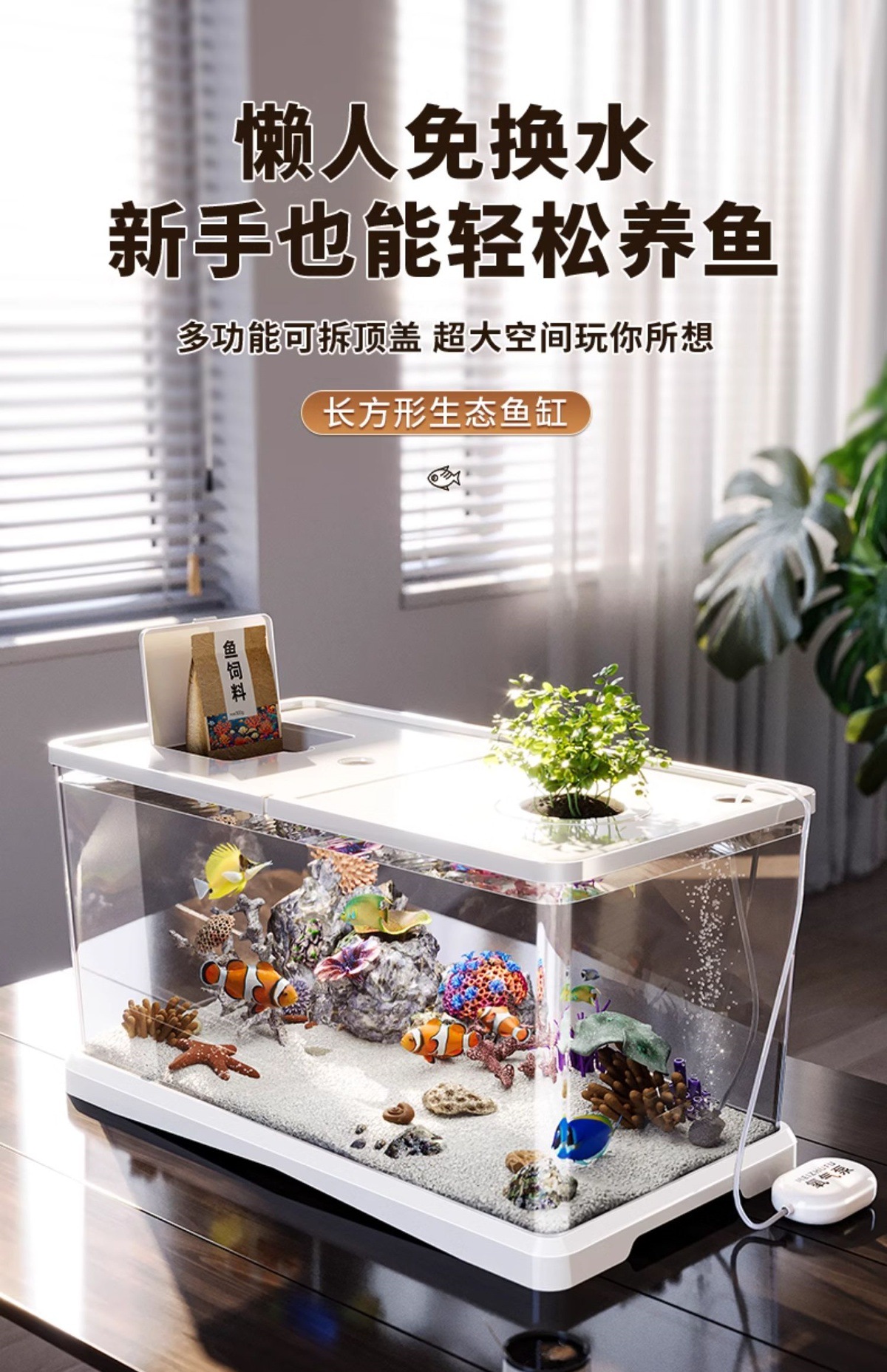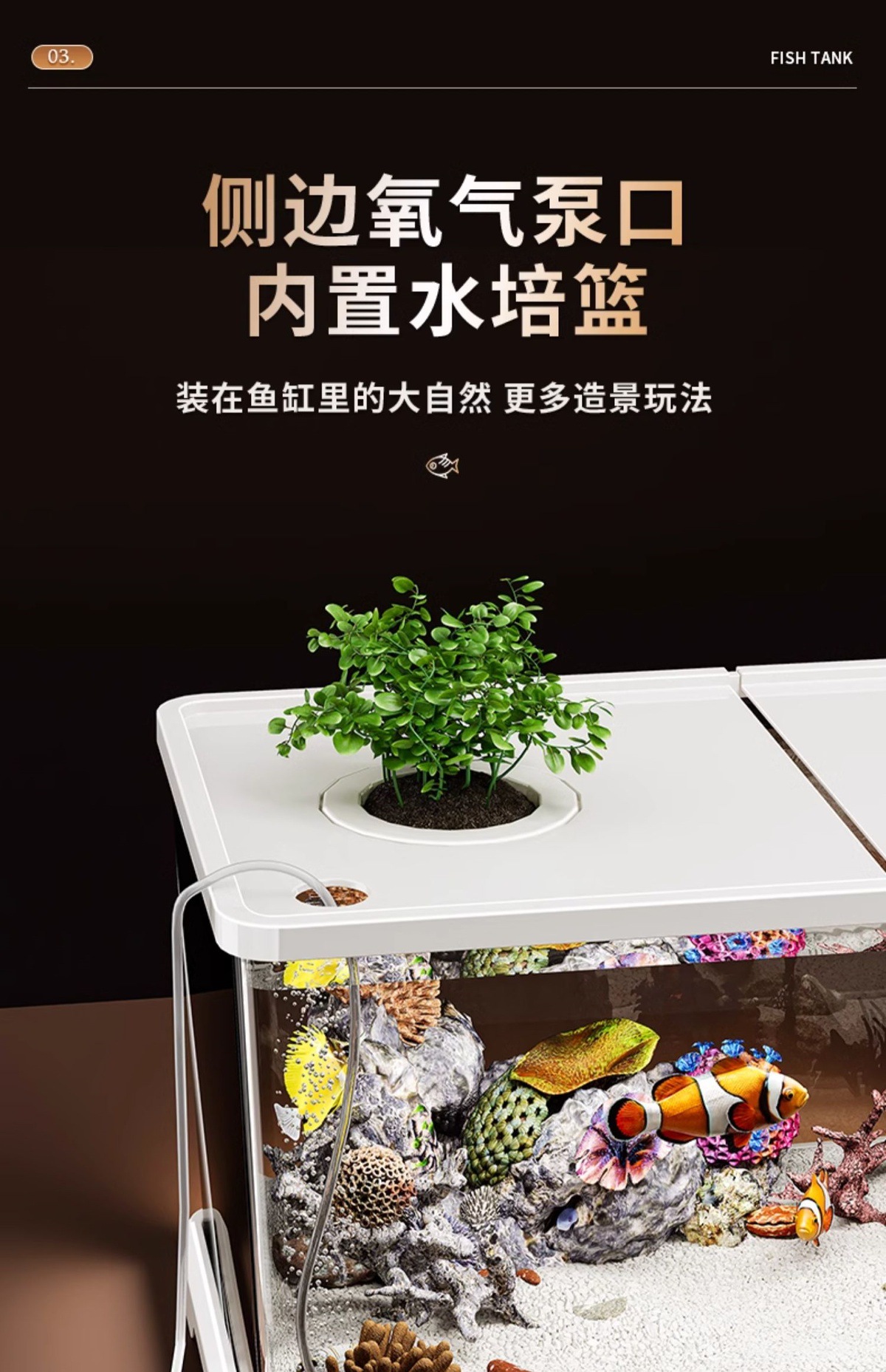 초백색 수조 필터 및 산소 발생기 일체형 기계, 작은 거실, 생태 물고기, 수초, 거북이 수조, 조경 장식품 수조
