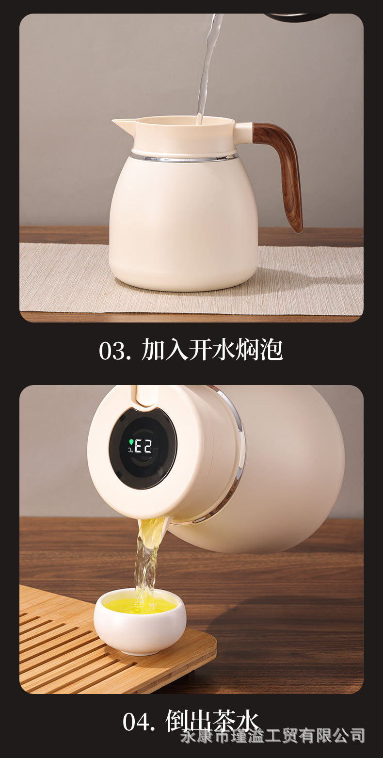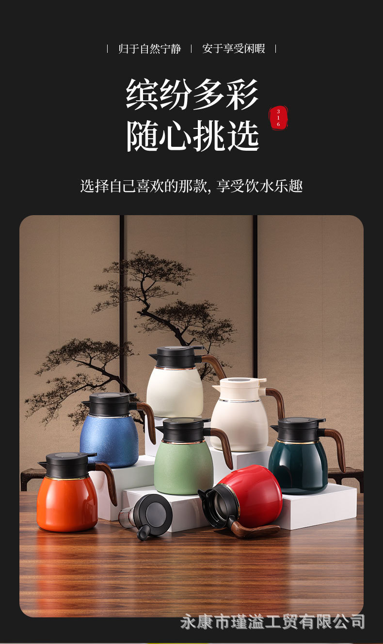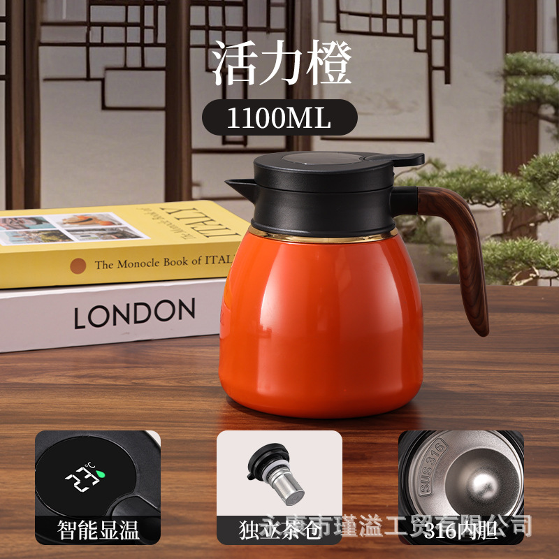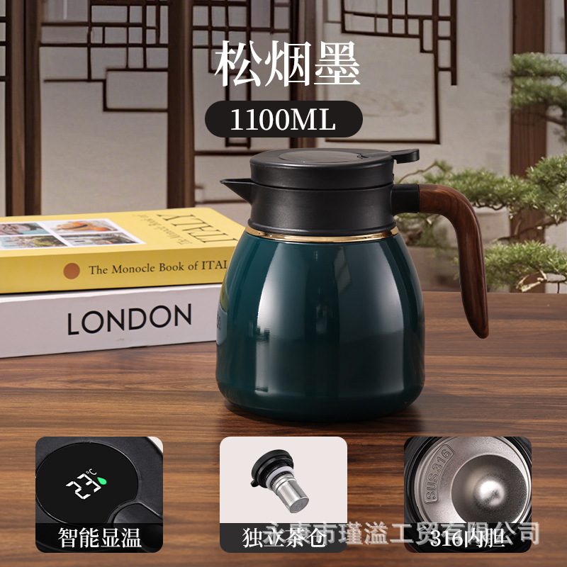 316 스테인레스 스틸 주전자 1100ml 오래된 흰색 차 주전자 차 분리 따뜻한 나뭇결 손잡이 단열 냄비스토어 가기