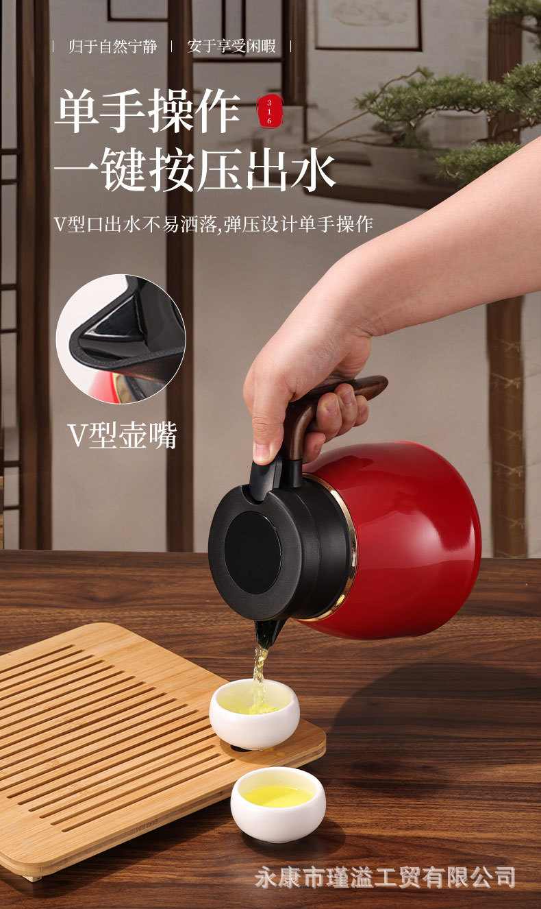 316 스테인레스 스틸 주전자 1100ml 오래된 흰색 차 주전자 차 분리 따뜻한 나뭇결 손잡이 단열 냄비