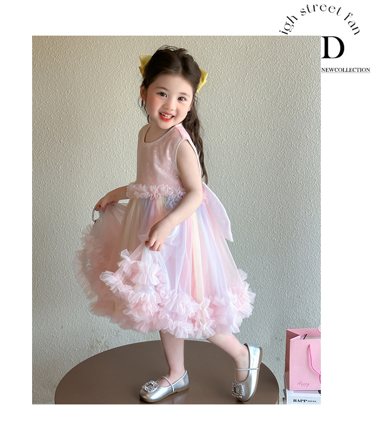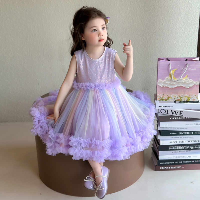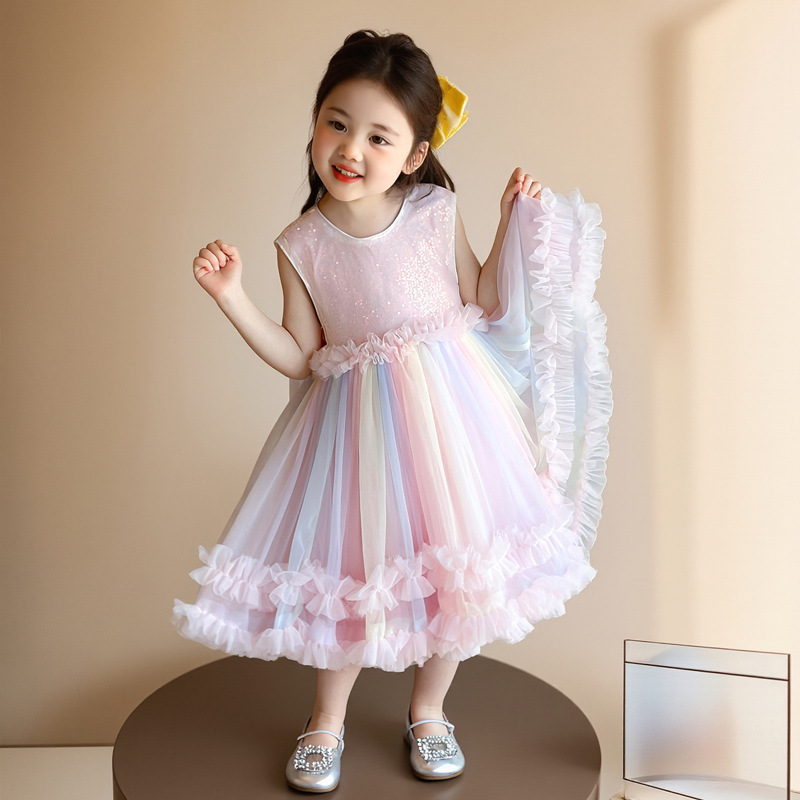 소녀 원피스 여름 어린이 서양식 레인보우 조끼 메시 공주 스커트 리틀 걸스 달콤한 판초 조끼
