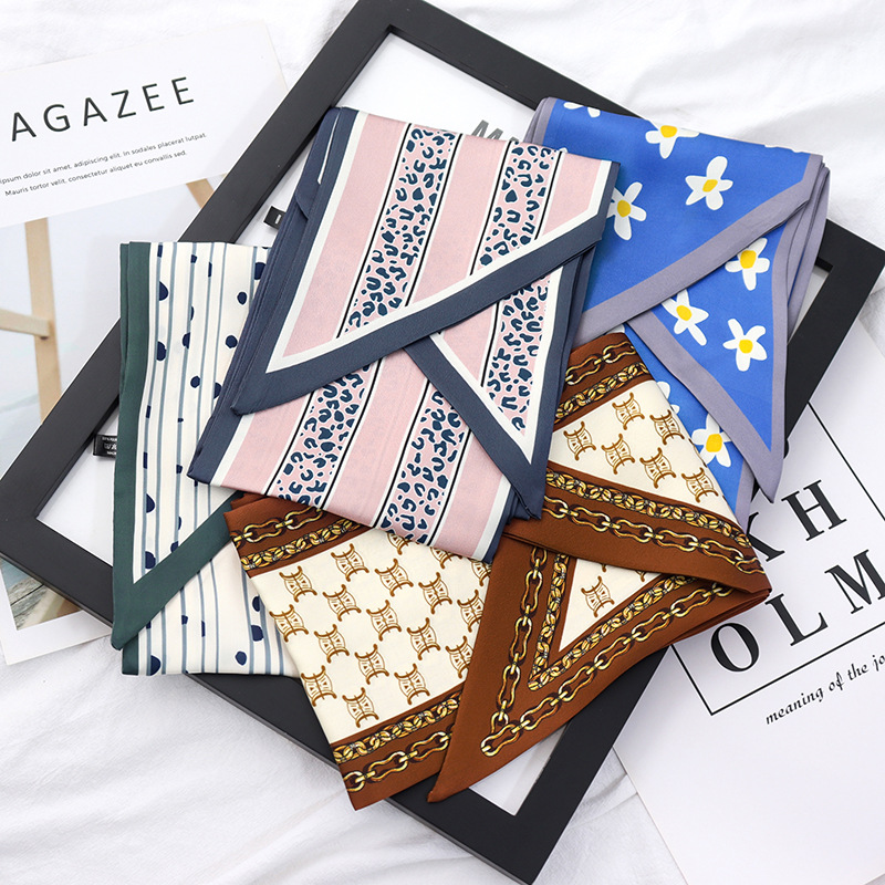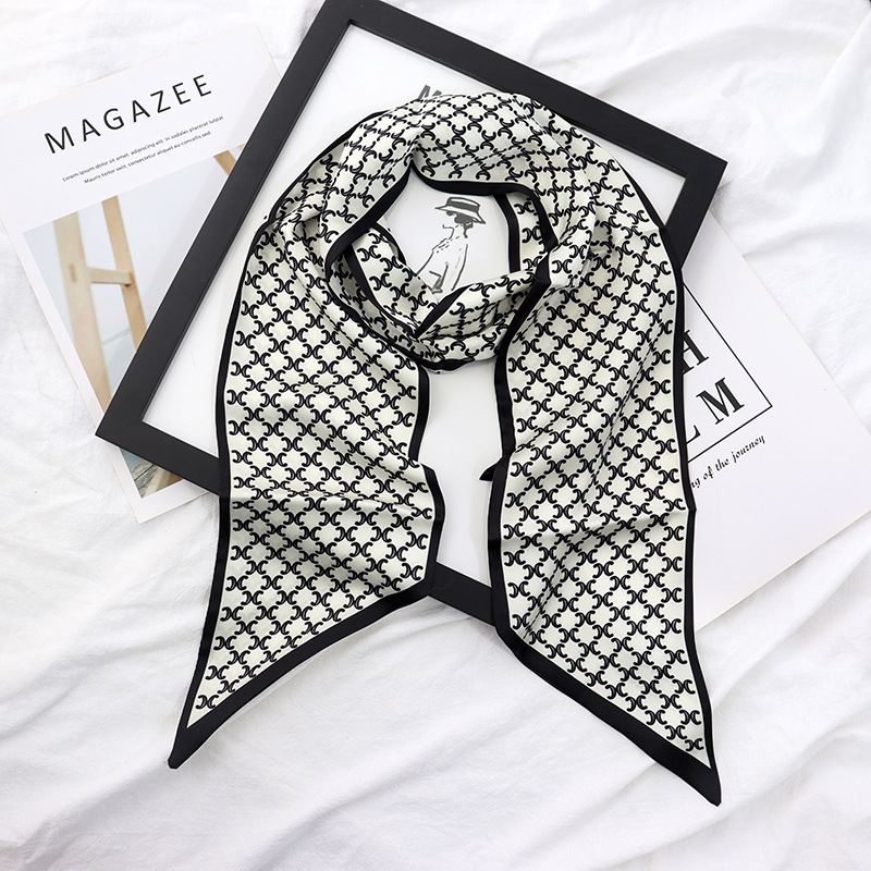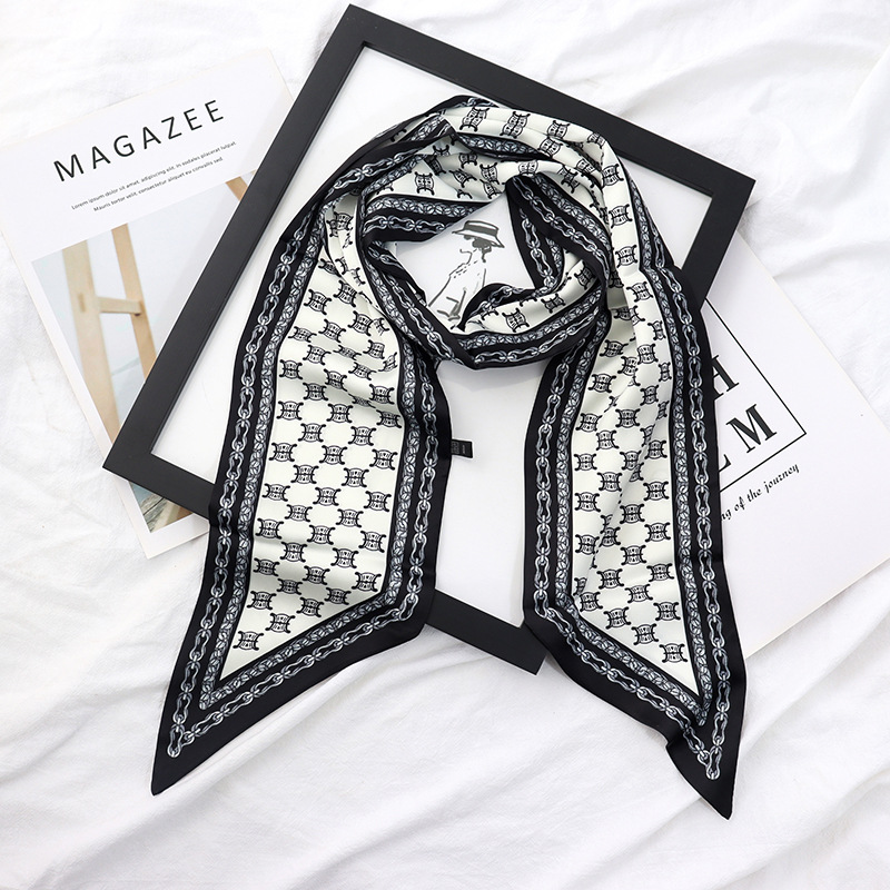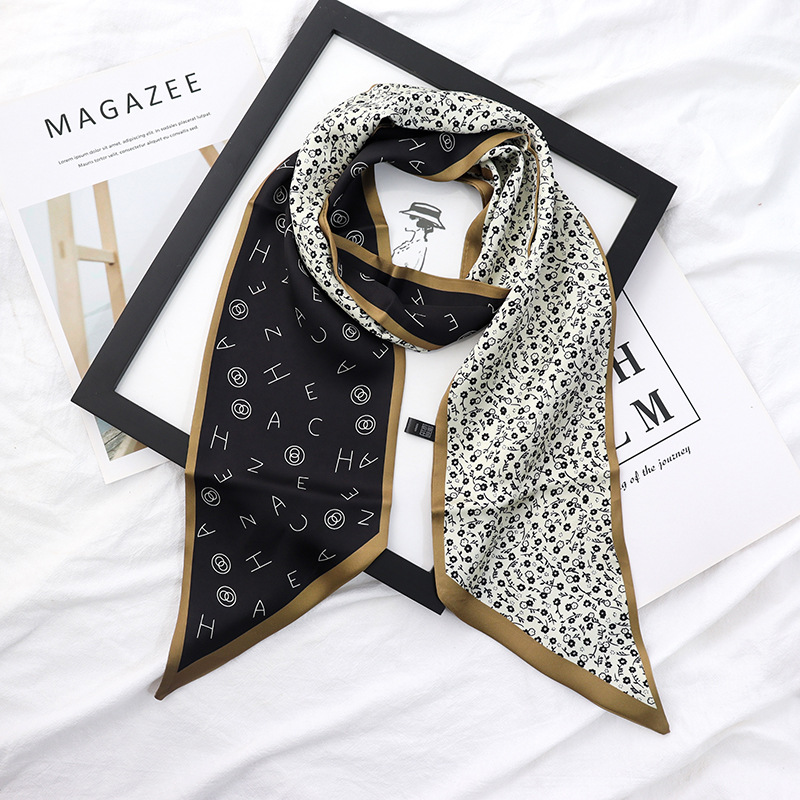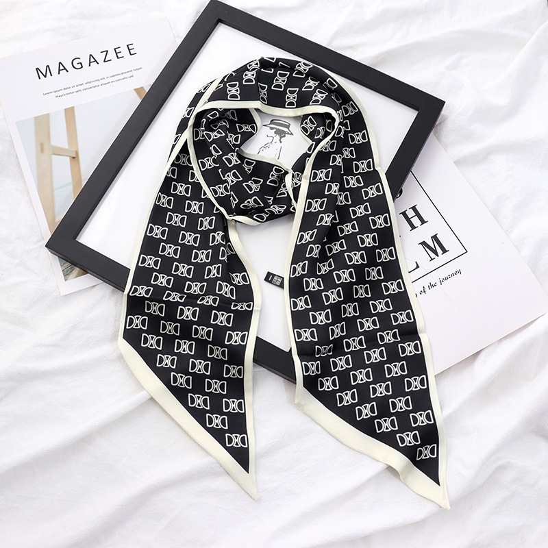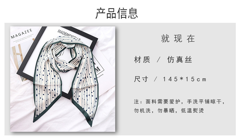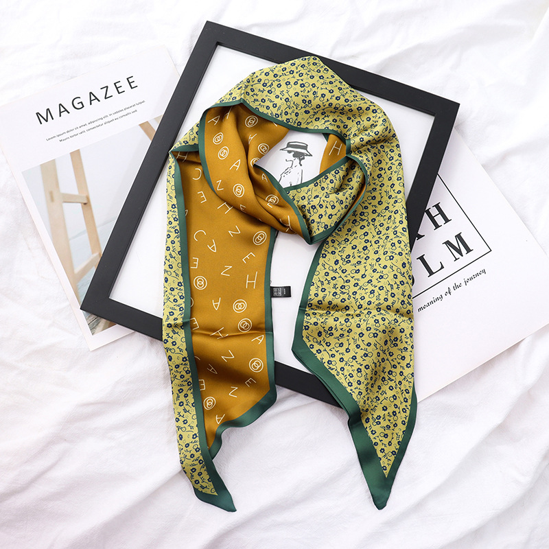 봄과 가을 여성용 실크 스카프 한국어 버전 다용도 긴 너비 작은 스카프 스카프 벨트 리본 가방 장식 리본