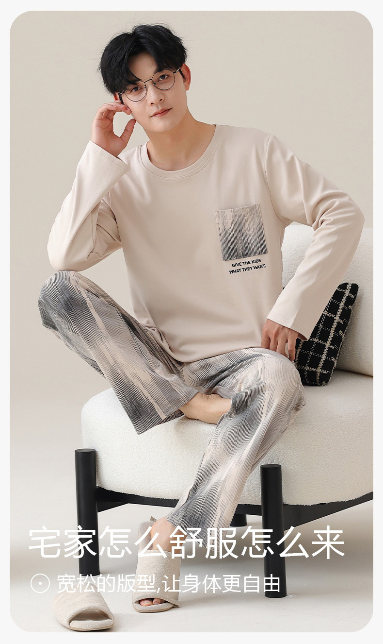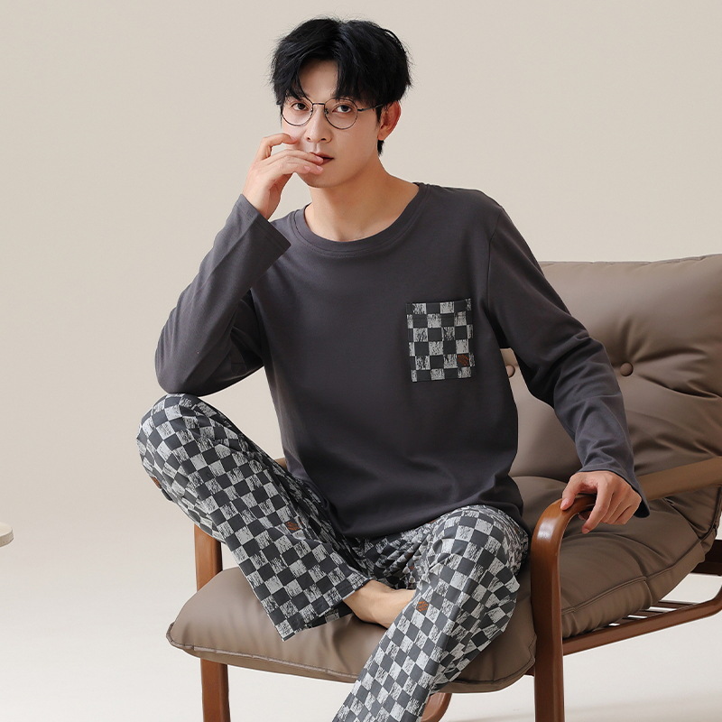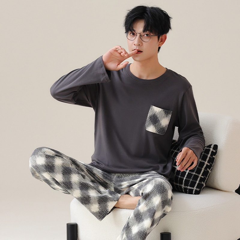 2025 봄 새로운 고품질 패브릭 정장 남성 잠옷 캐주얼 홈웨어 겉옷 긴 소매 바지는 외부에 착용 가능