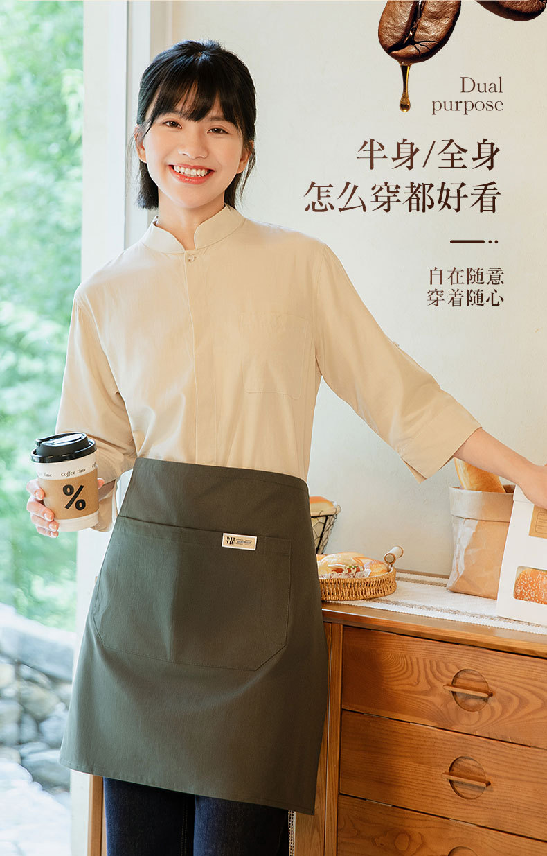 2024 새로운 이중 목적 하프 길이 앞치마 맞춤 인쇄 로고 웨이터 작업복 여성 케이터링 특별 커피 숍