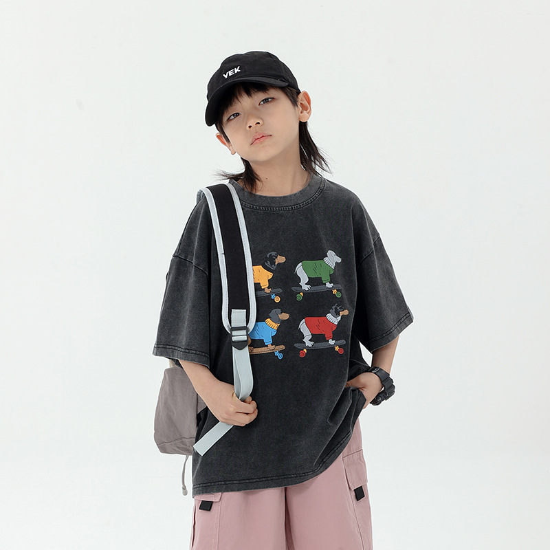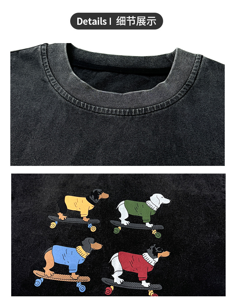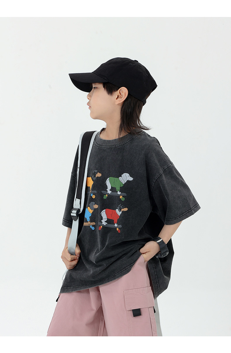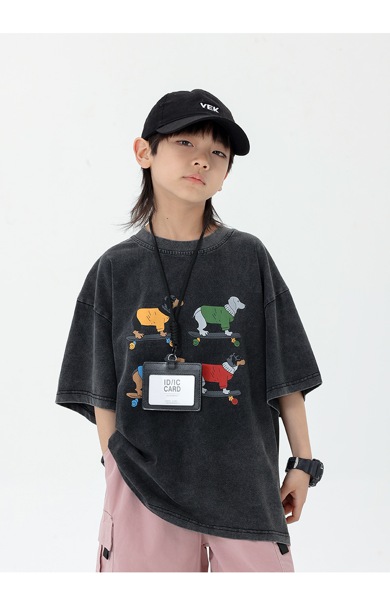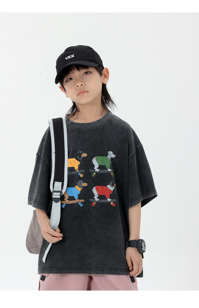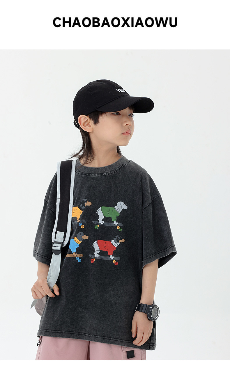 남자들의 반팔 2025 여름 새 어린이 캐주얼 샌드 워시 티셔츠 잘 생긴 남자 보물 닥스 훈트 개 크루 넥 T 트렌디스토어 가기