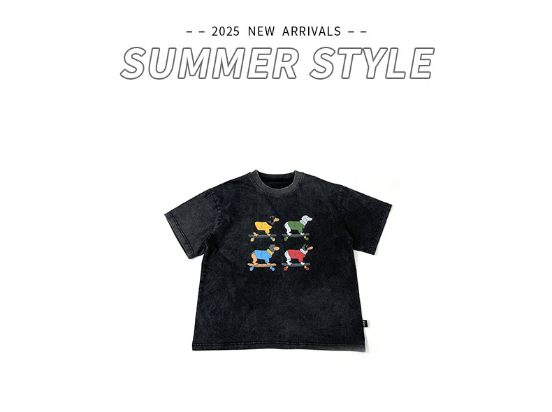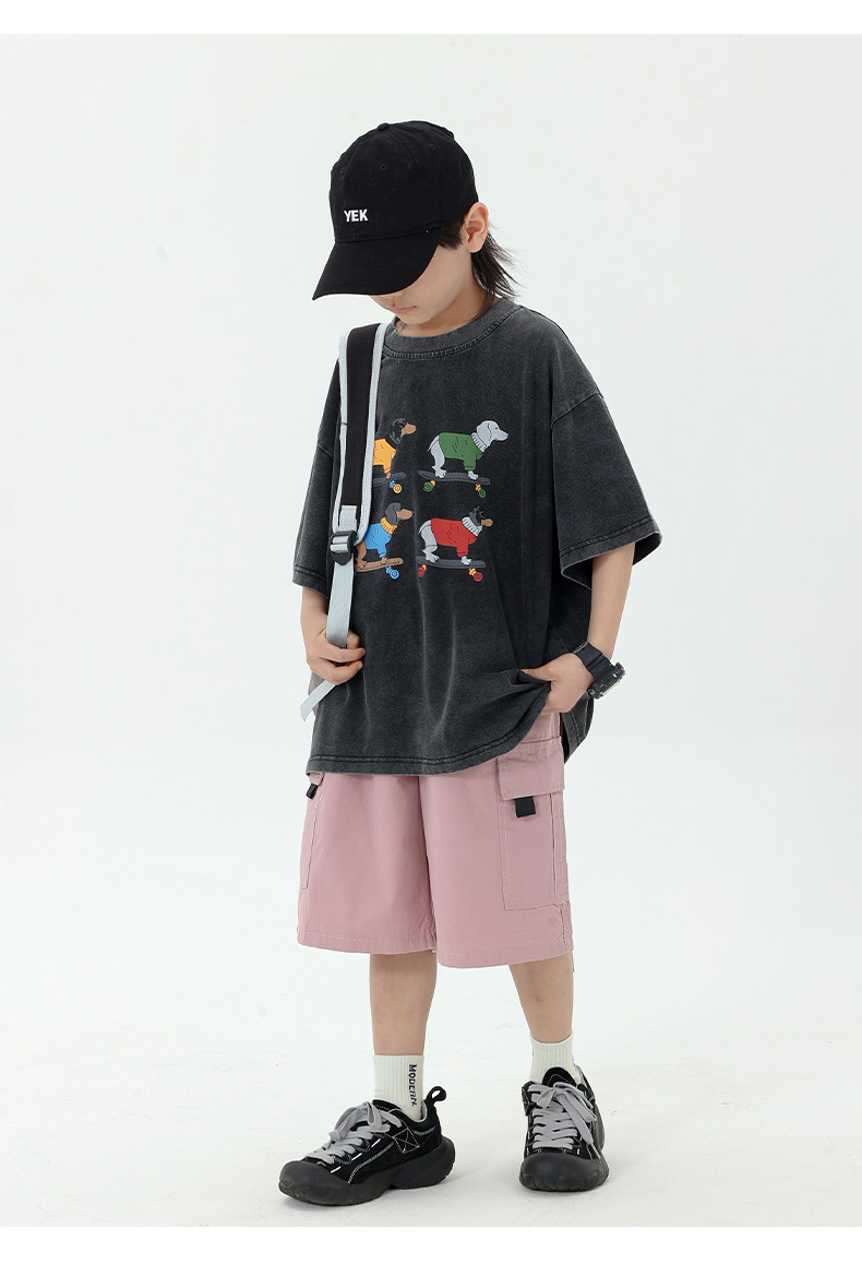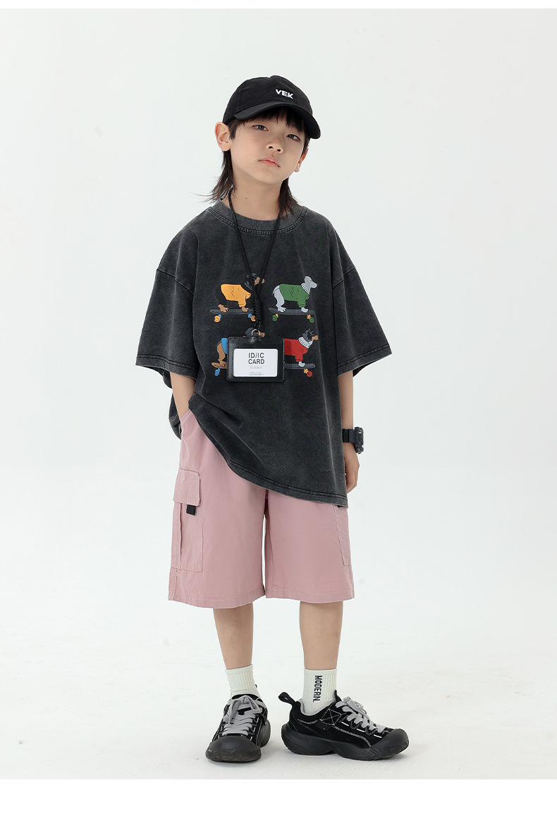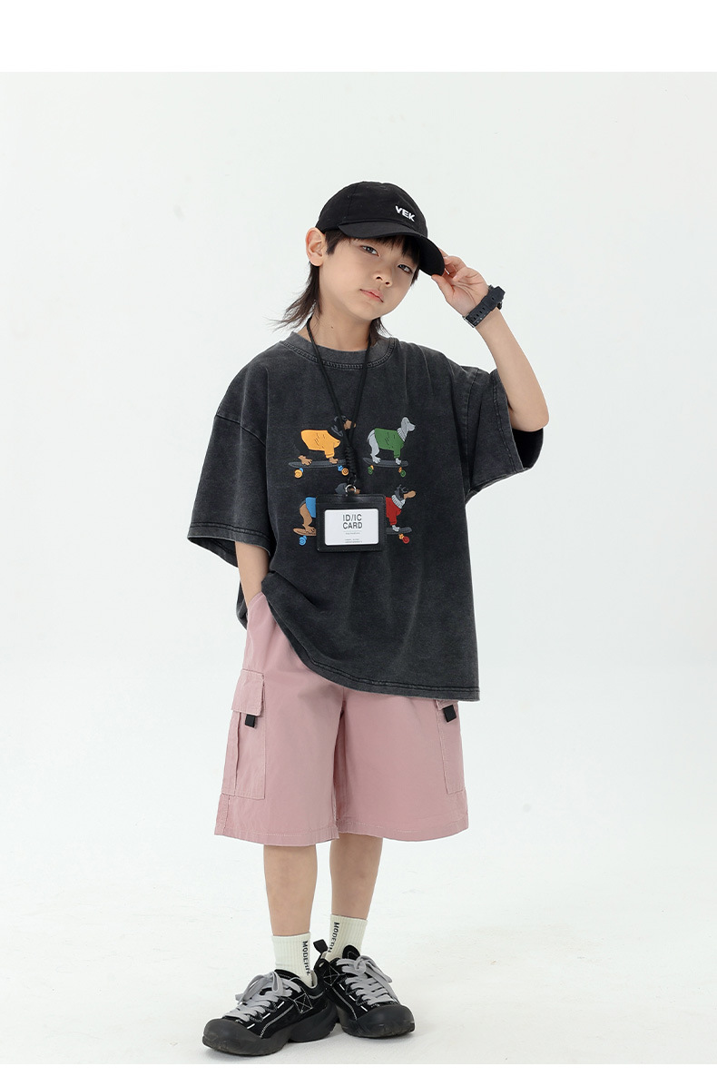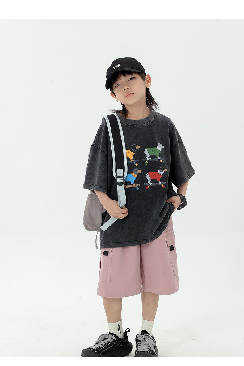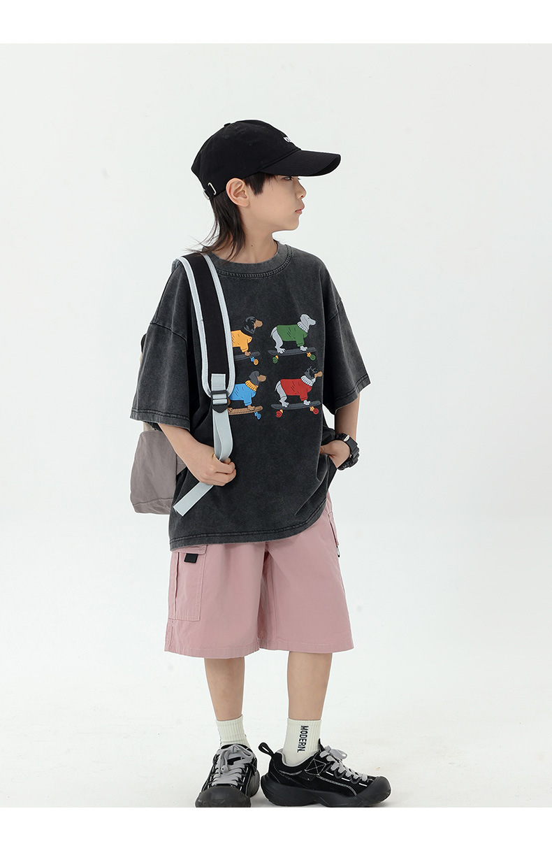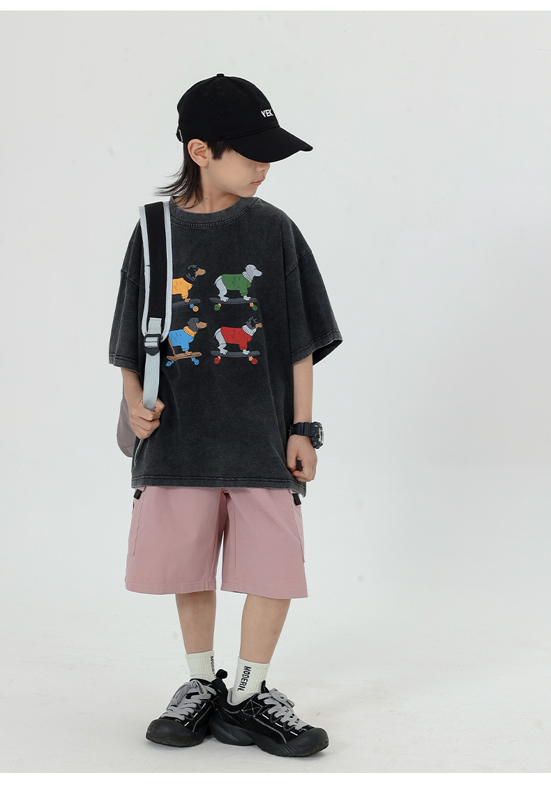 남자들의 반팔 2025 여름 새 어린이 캐주얼 샌드 워시 티셔츠 잘 생긴 남자 보물 닥스 훈트 개 크루 넥 T 트렌디스토어 가기