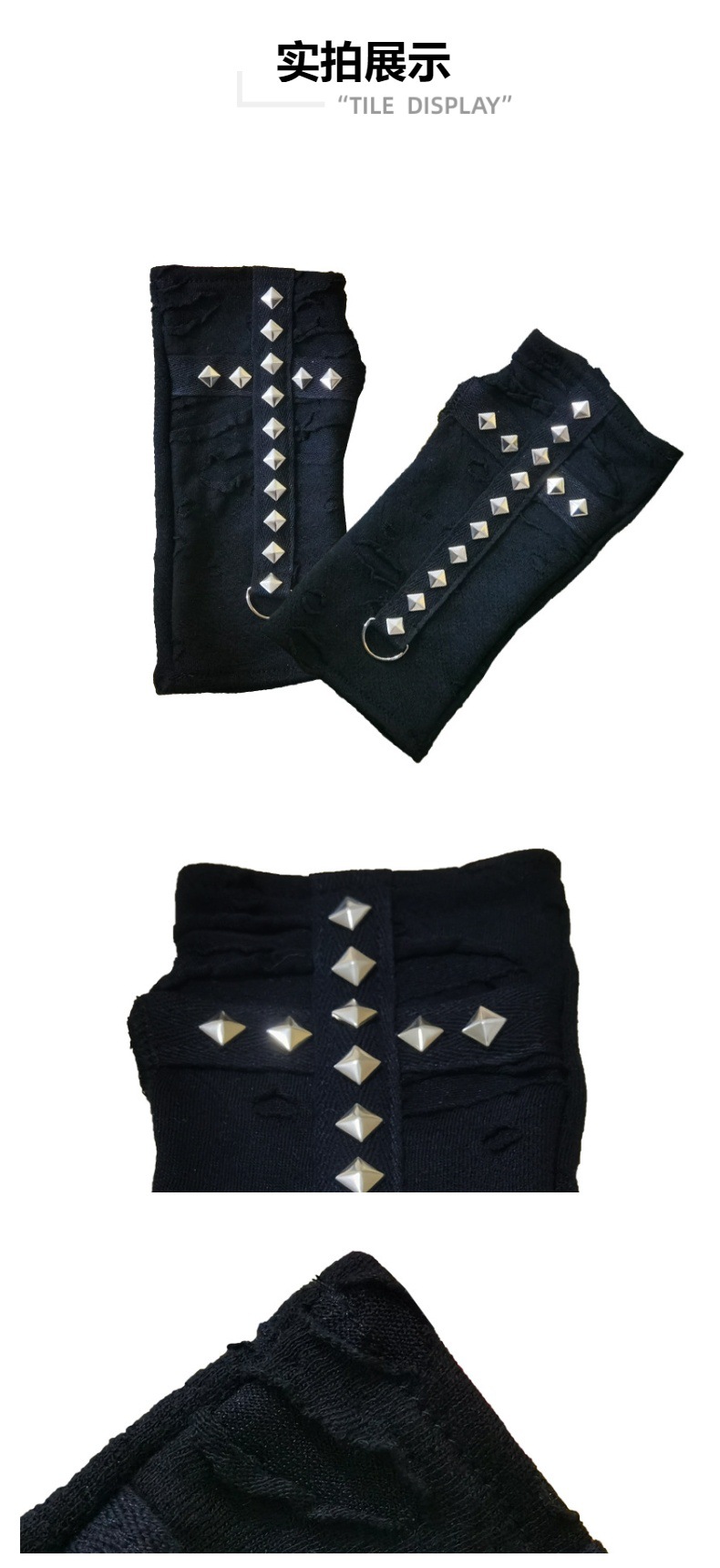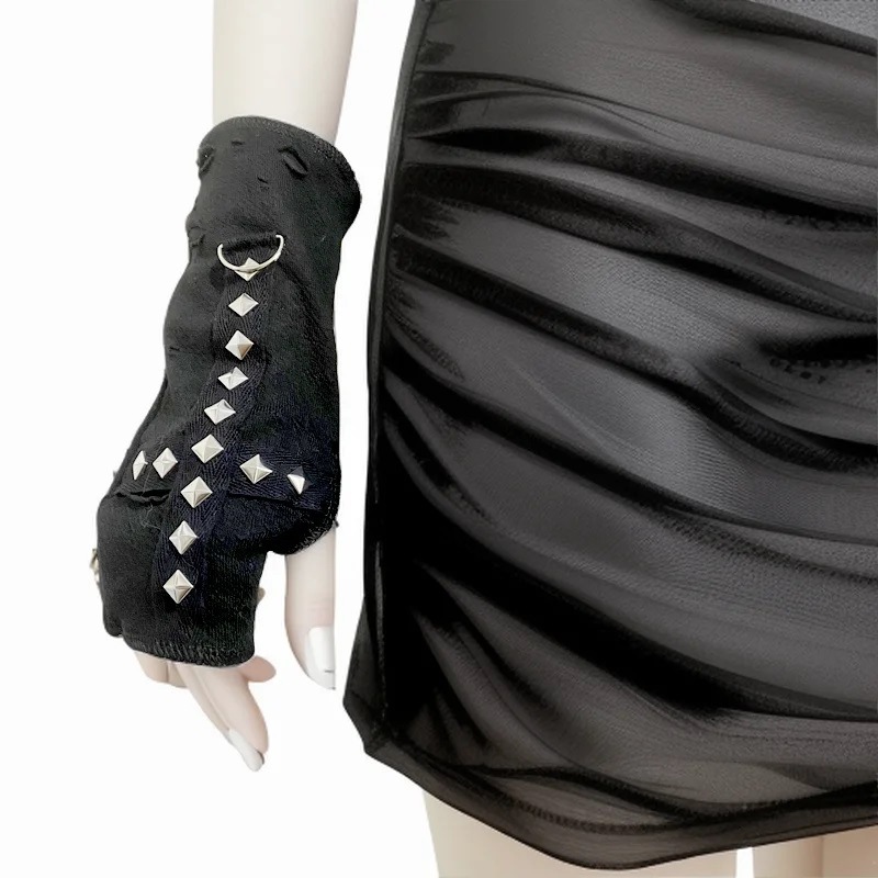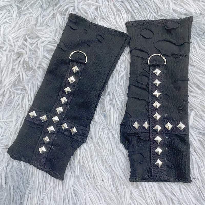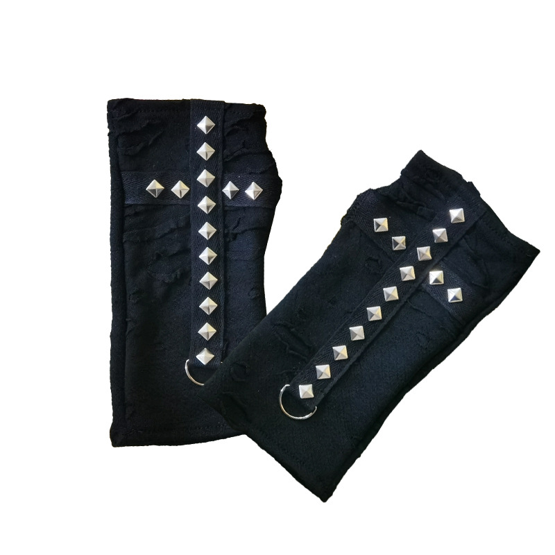 스트리트 스타일 핫걸 핑거리스 장갑, 다크 크로스 리벳 소녀용 핸드 슬리브, 바이커 스타일 숏 핑거리스 슬리브, 재고 있음스토어 가기
