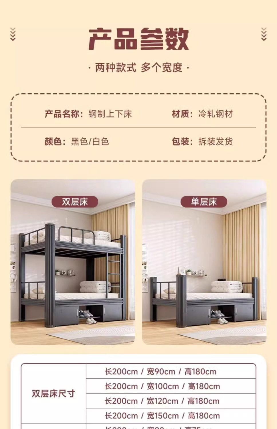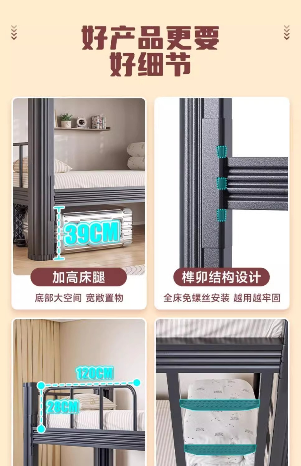 상하 이층 철침대 이층 직원 기숙사 침대 철제 학생 아파트 높고 낮은 철제 프레임 침대 공장 현장 더블 침대스토어 가기
