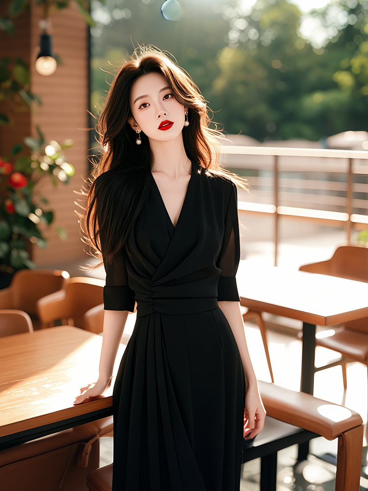 봄 스타일은 강한 분위기, 왕실 자매, 바람, 여신, 팬, 시니어 감각, 품위있는 분위기, 푸른 원피스 중요한 행사에 참석합니다.스토어 가기