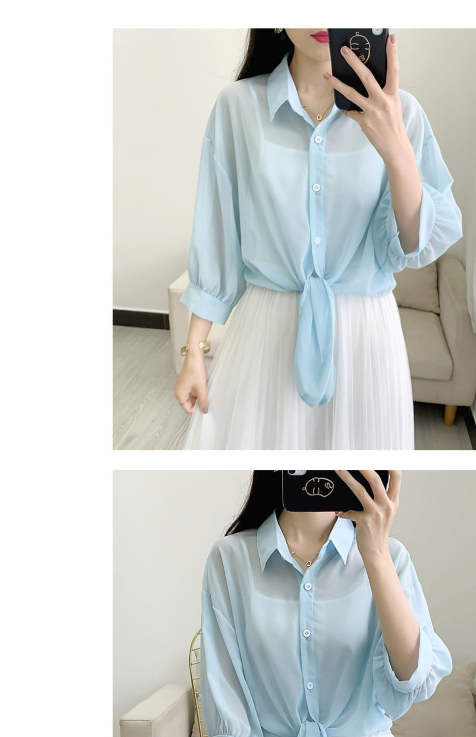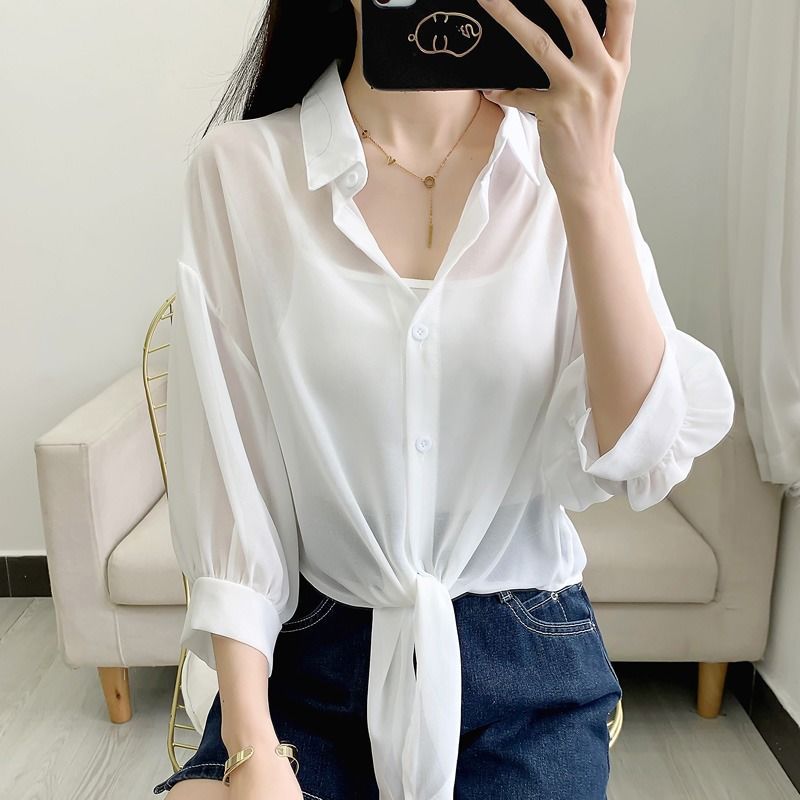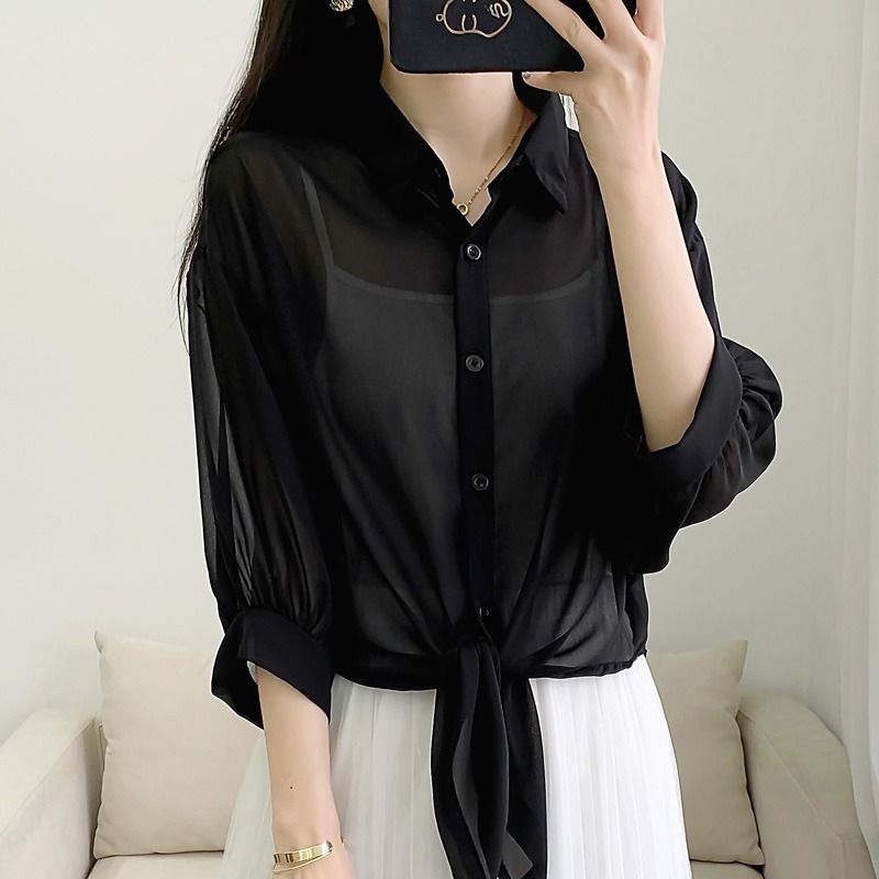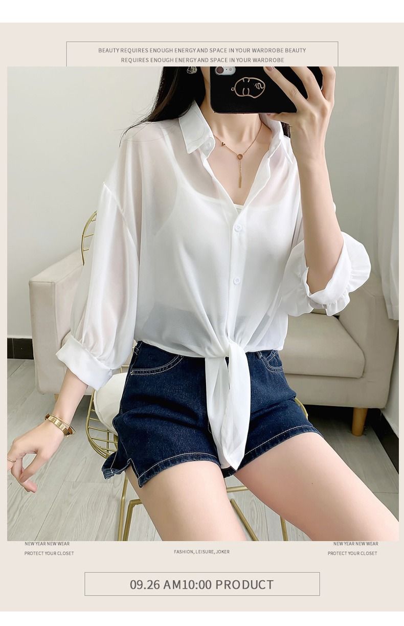 여름 여성용 쉬폰 셔츠, 숄, 얇은 코트, 탑, 서스펜더 스커트, 쉬폰 가디건, 짧은 자외선 차단스토어 가기