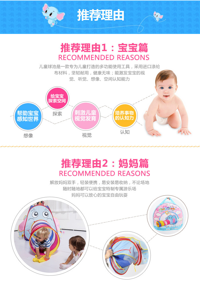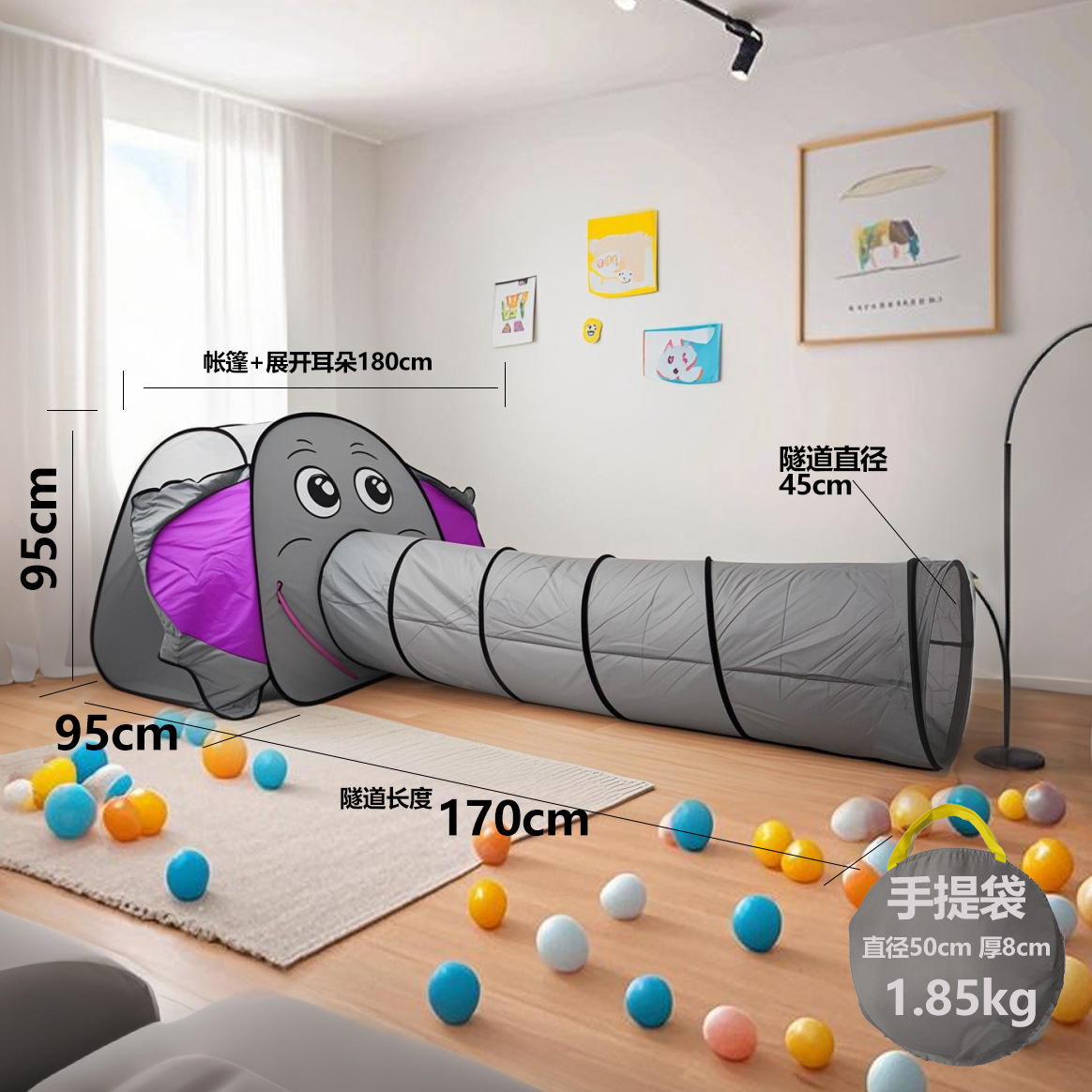 • 아기 코끼리 텐트 + 터널(공 50개 포함)