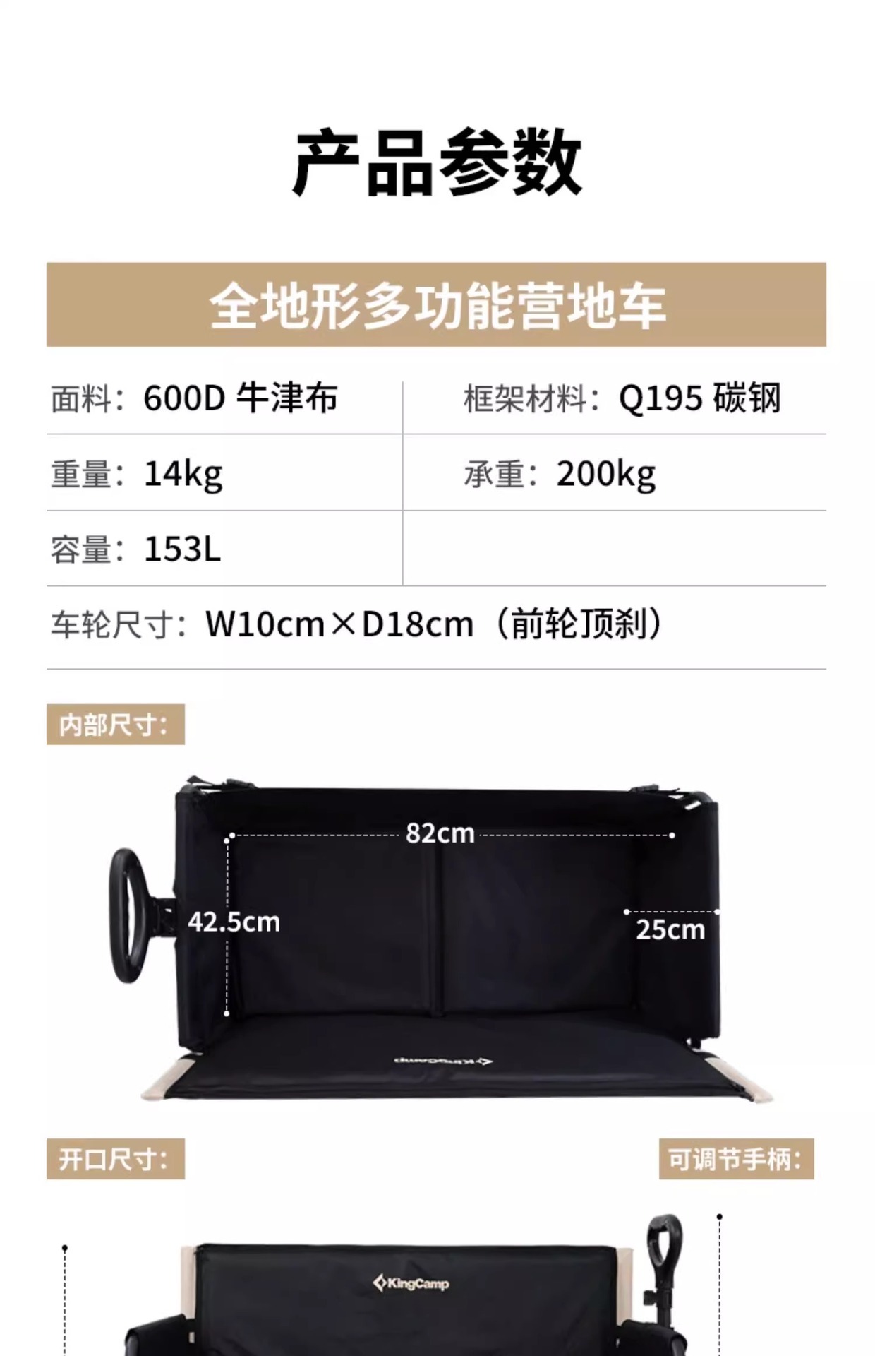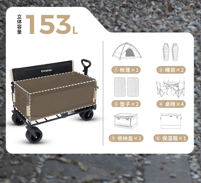 KingCamp Camper 자동차 야외 피크닉 접이식 트롤리 어린이 거짓말 다기능 캠프 카 캠핑 트레일러스토어 가기