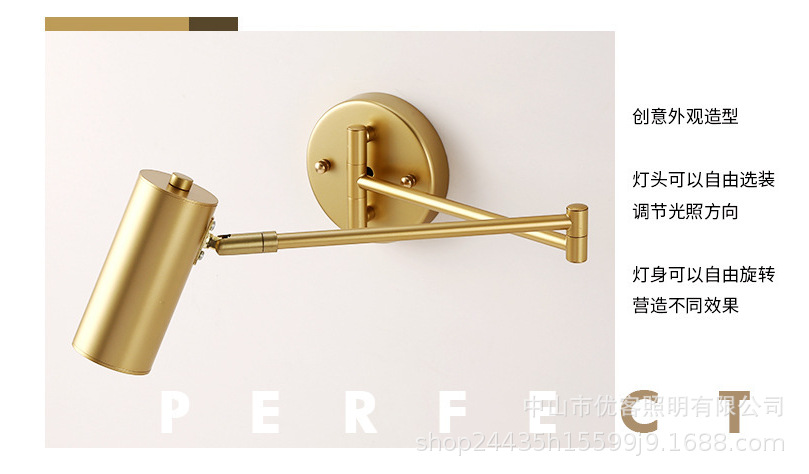 북유럽 심플 호텔 침대 옆 독서 눈 보호 벽 램프 연구 침실 사이버 기념 회전 텔레스코픽 접이식 로커 팔 램프스토어 가기