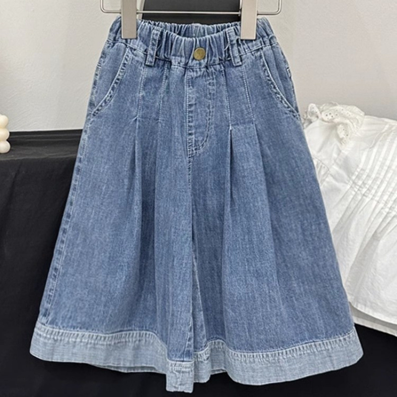 여아 와이드 팬츠 2025년 여름 신상 중대형 아동 루즈 크롭 팬츠 한국식 슬림 여아 얇은 청바지스토어 가기