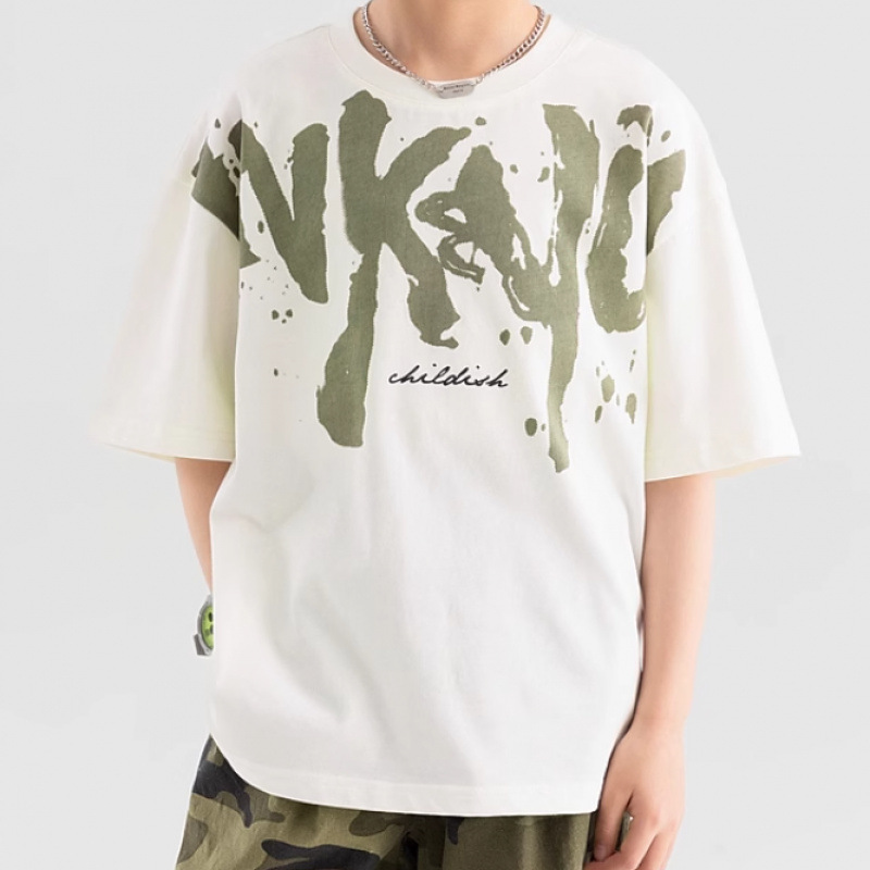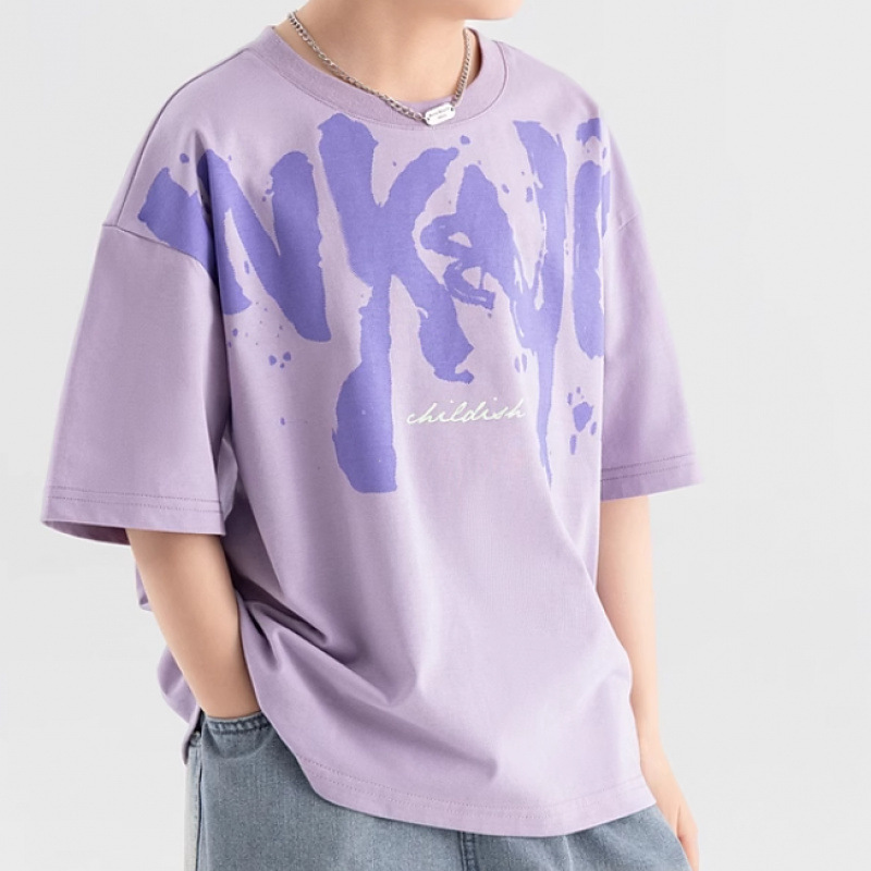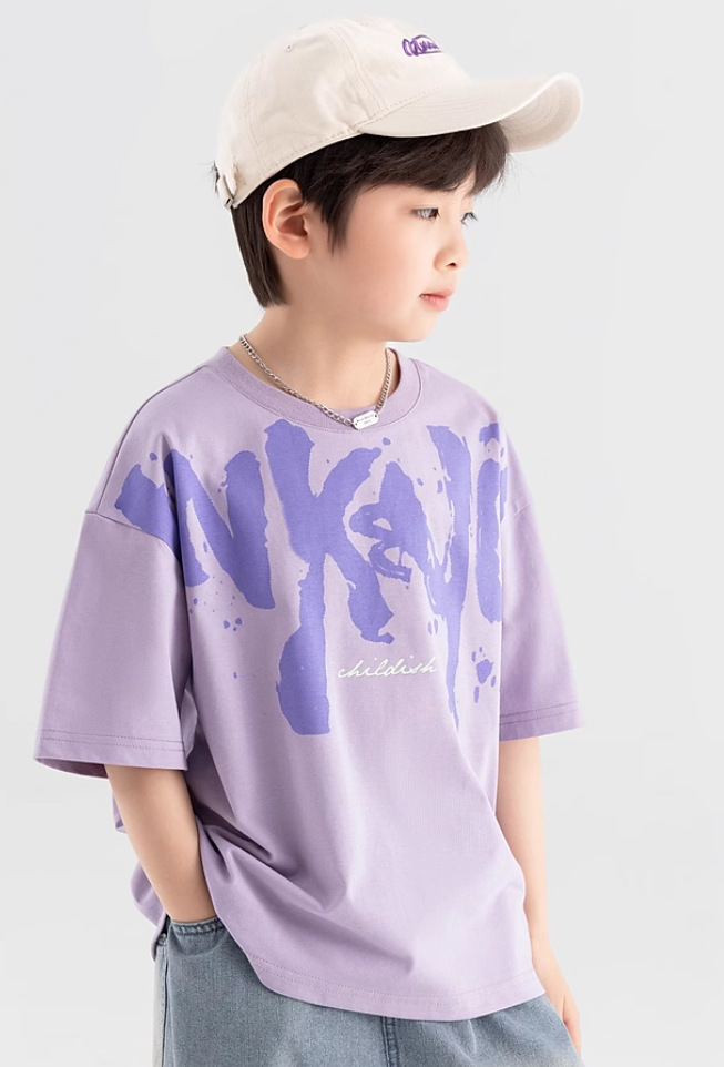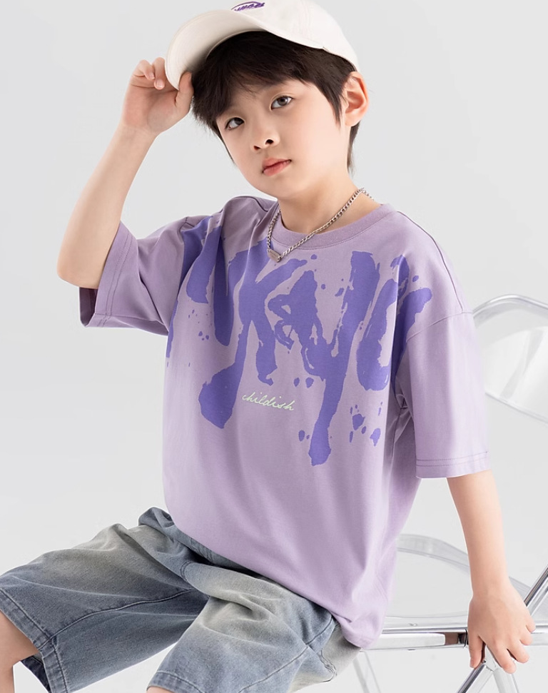 남학생 반팔 티셔츠 2025 년 여름 새 어린이 면화 반소매 중첩 어린이 길거리 튀긴 서머 탑 트렌디 티셔츠