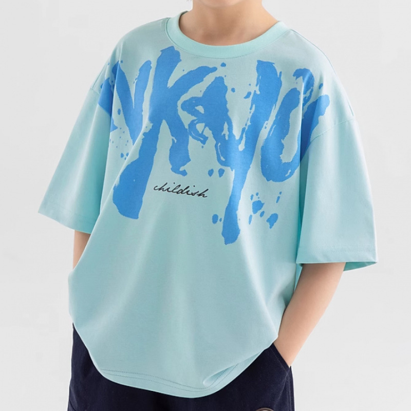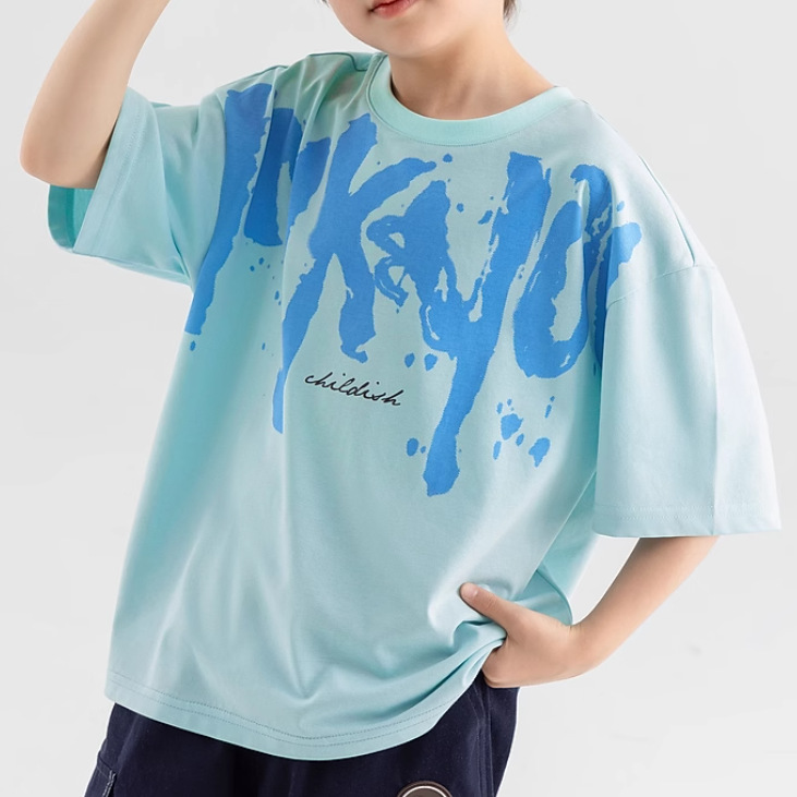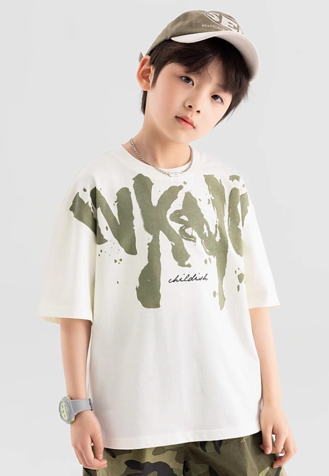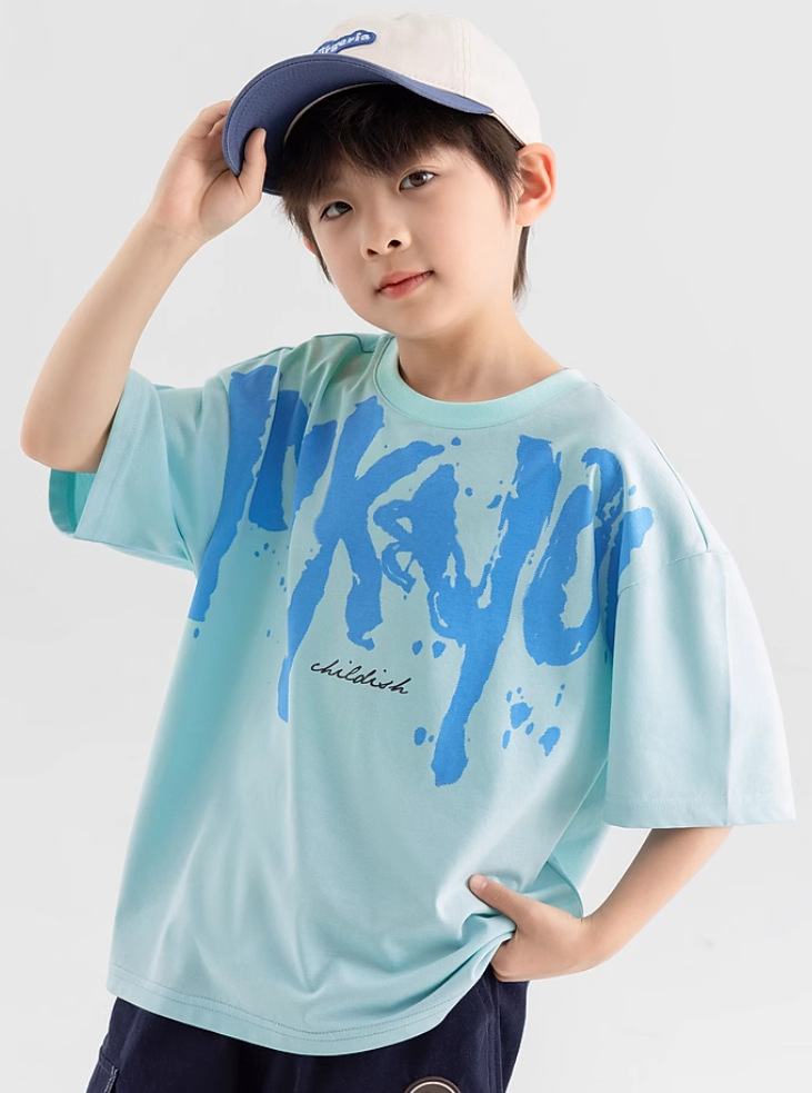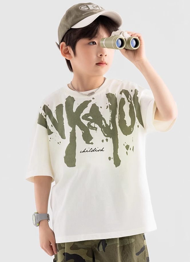 남학생 반팔 티셔츠 2025 년 여름 새 어린이 면화 반소매 중첩 어린이 길거리 튀긴 서머 탑 트렌디 티셔츠스토어 가기