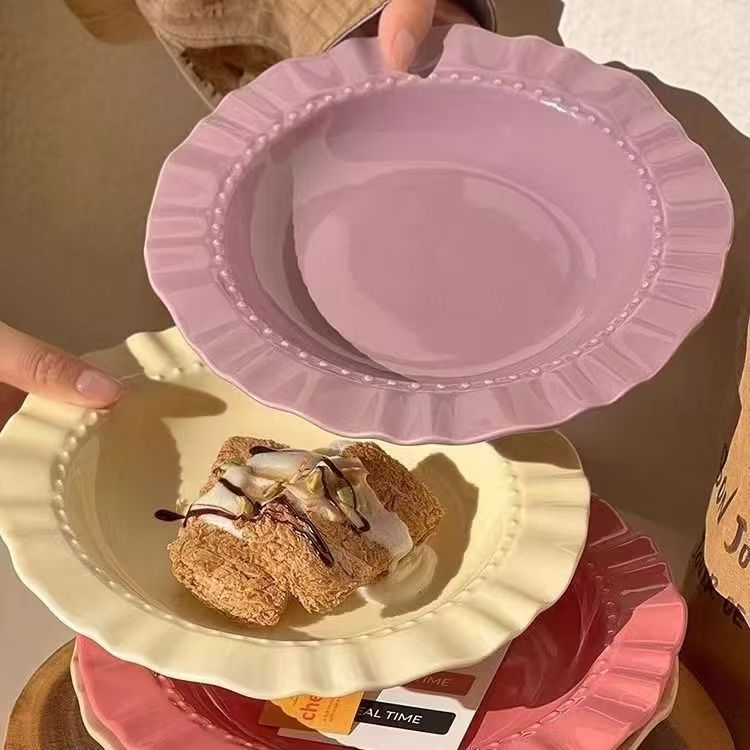 프랑스 레이스 밀짚 모자 디너 플레이트 고급 세라믹 서양식 딥 플레이트 인 스타일 Pagat 홈 샐러드 디저트 플레이트 플레이트