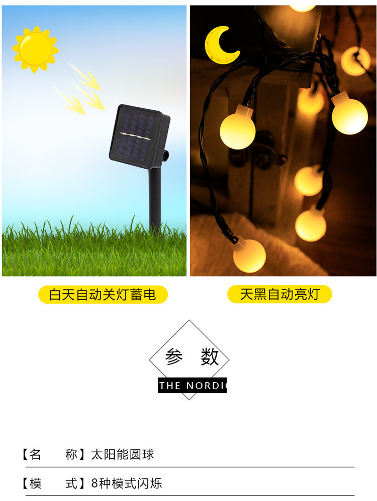 태양 야광 야외 캠핑 텐트 라이트 스트링 분위기 장식 라운드 볼 스타 라이트 코트야드 정원 조명
