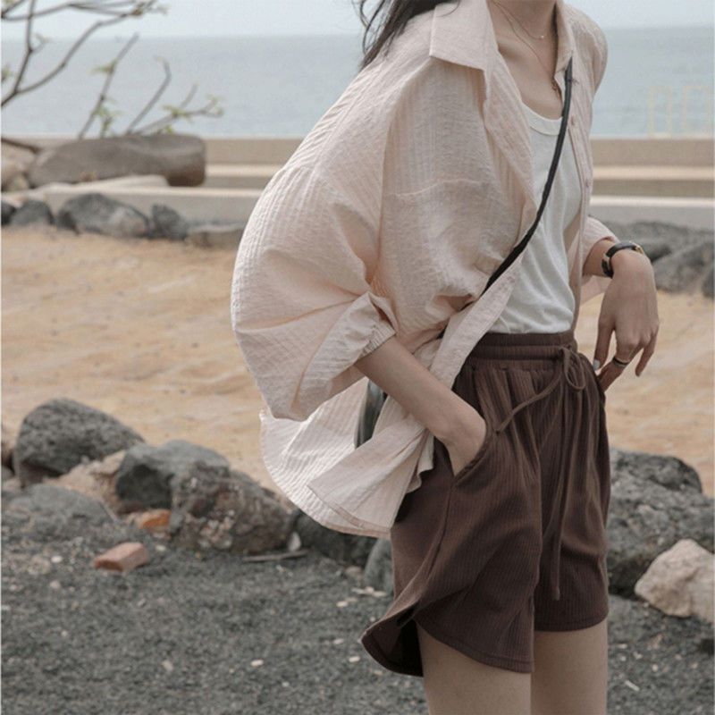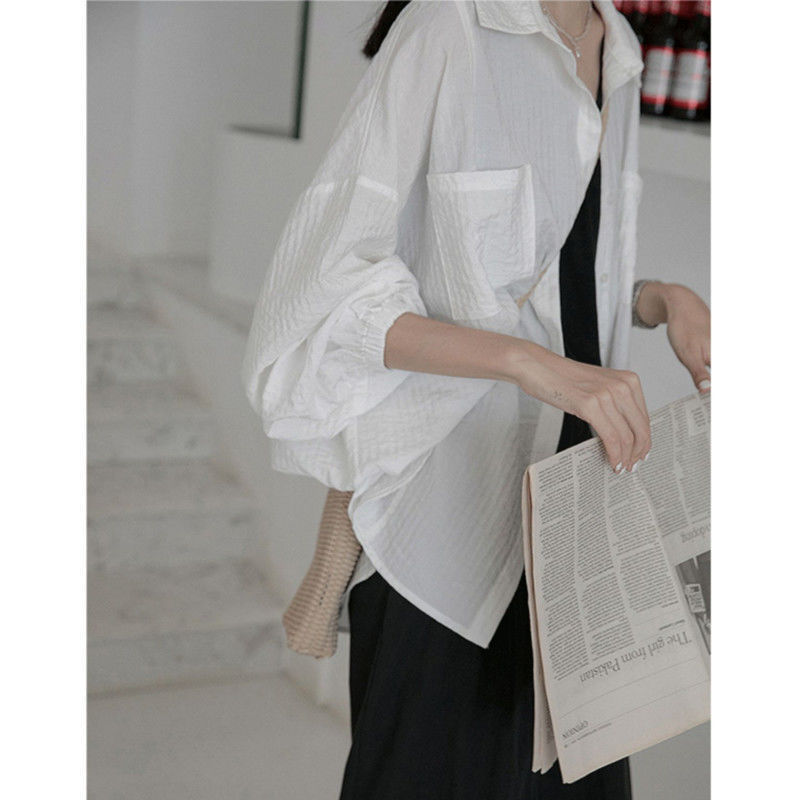 빈티지 홍콩 스타일 코튼 및 리넨 셔츠 여성의 봄과 여름 얇은 프랑스 스타일 게으른 느슨한 디자인 틈새 최고 선 스크린 재킷
