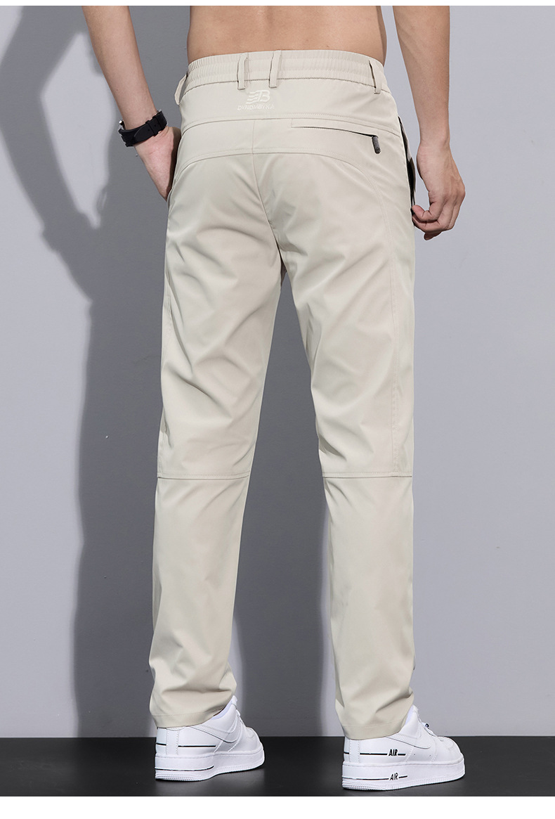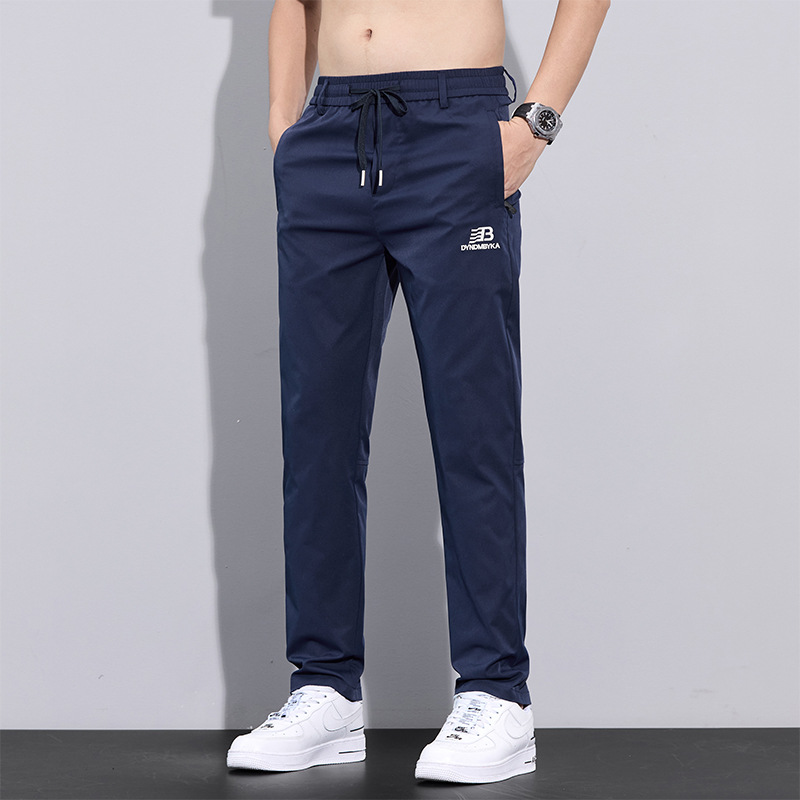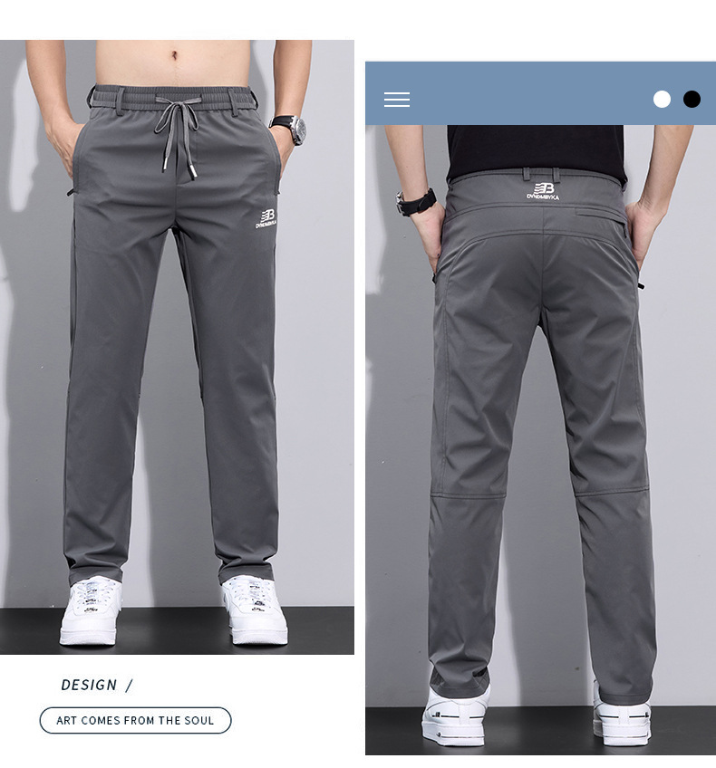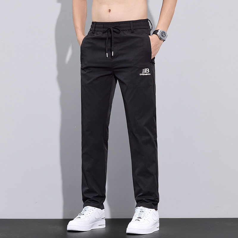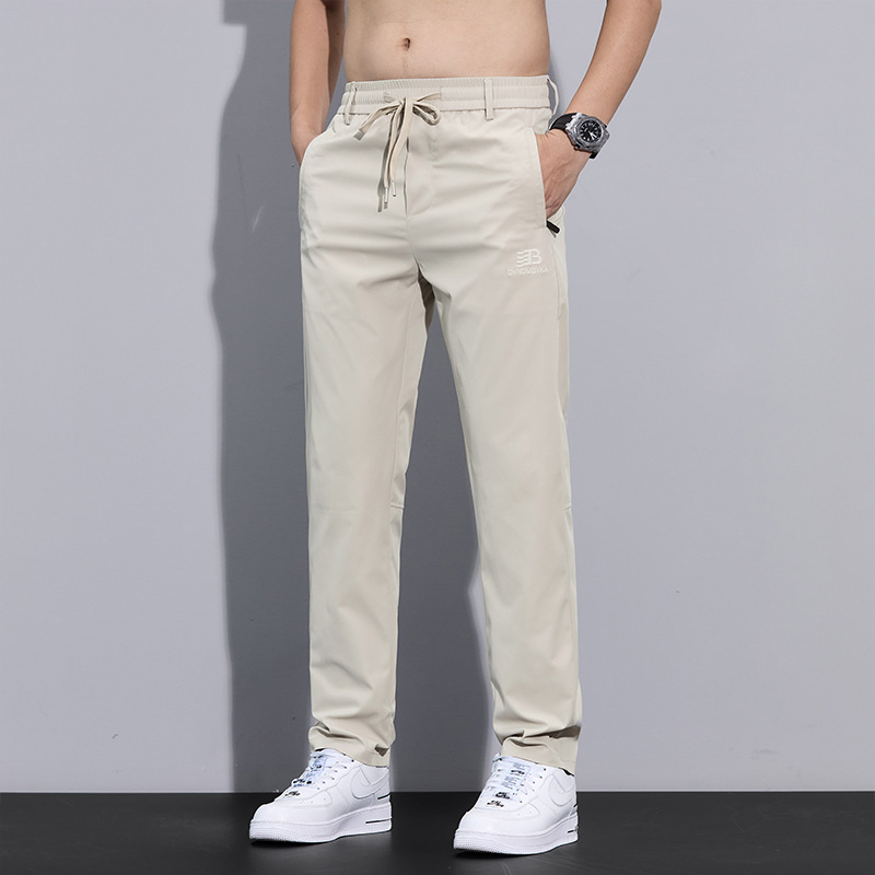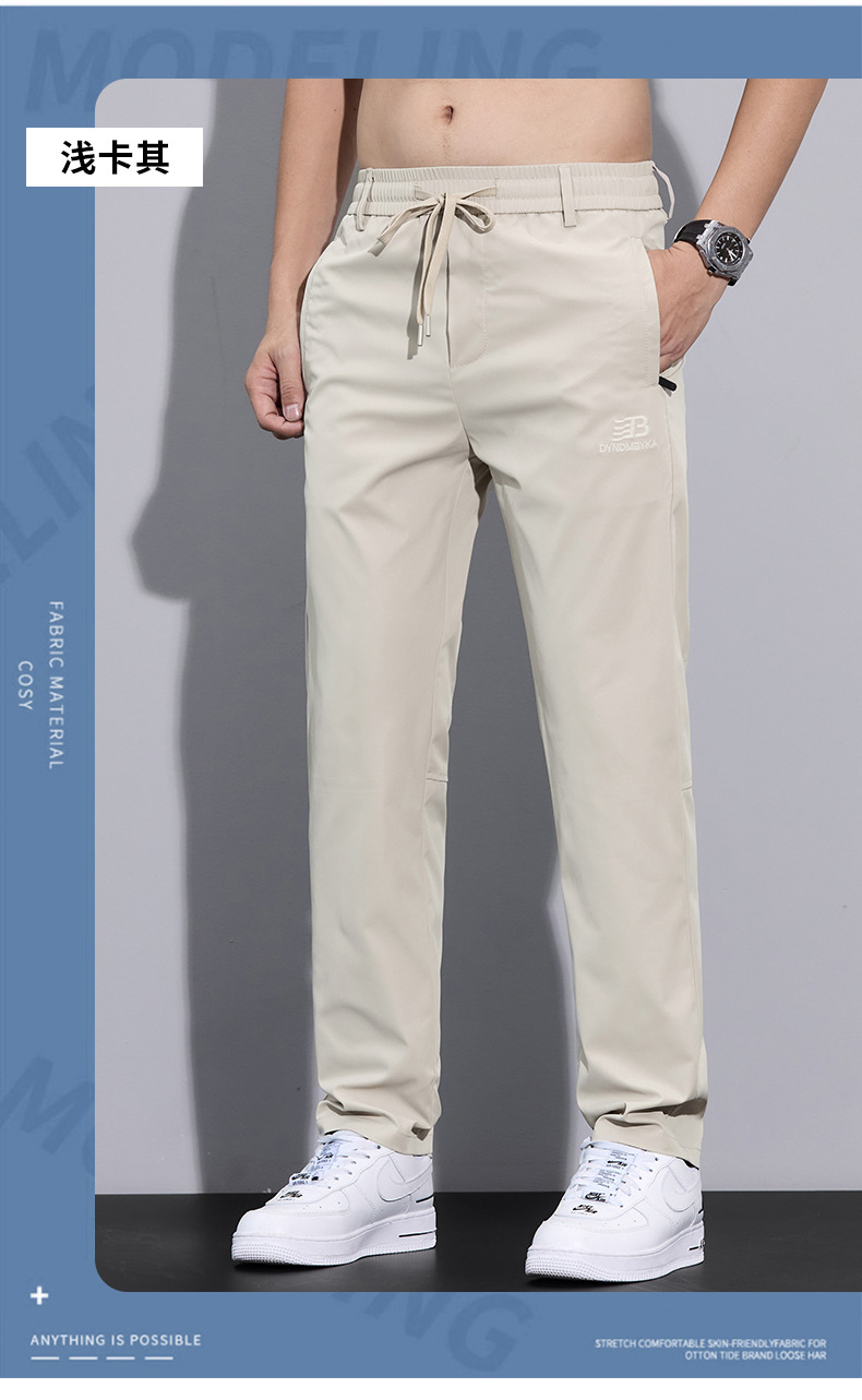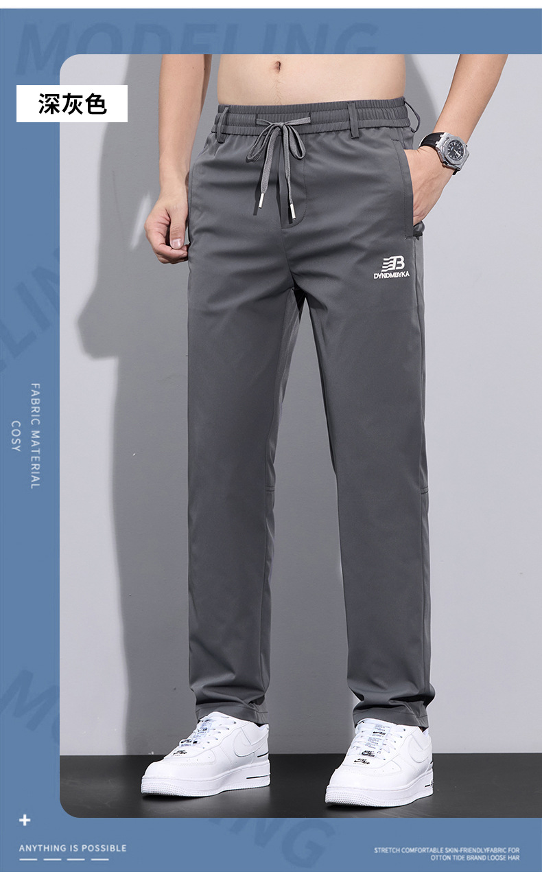 2025 여름 새로운 남자 캐주얼 바지 남자의 얇은 스트레치 빠른 건조 아이스 실크 바지 유행 올 매치 스트레이트 롱 바지